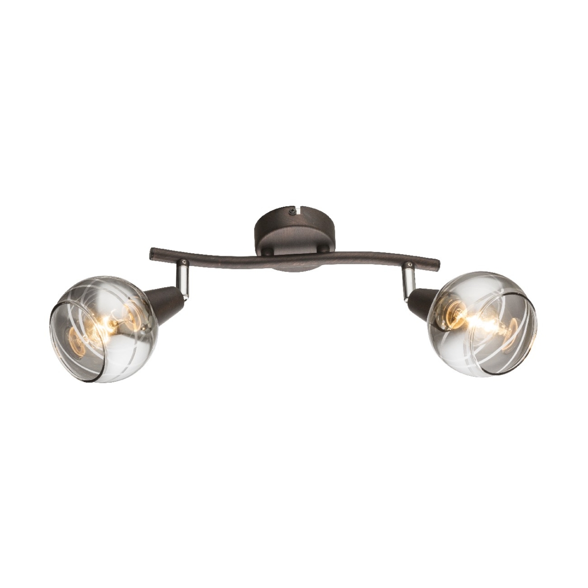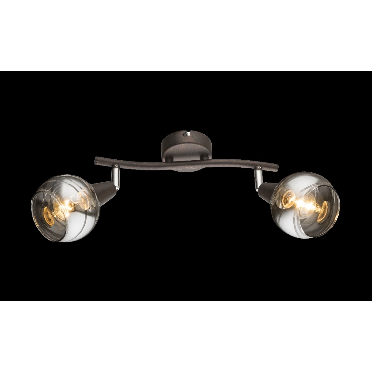 Ovaj reflektor izgleda i elegantno i rustično zbog svog dizajna. Dva reflektora nalaze se na kraju bronzanog stuba. Abažur reflektora je napravljen od providnog zadimljenog stakla i ima fine zlatne ukrasne linije na kuglama što doprinosi njihovoj eleganciji. Uključene LED sijalice, sa E14 grlom, zaokružuju celu stvar sa 800 lumena jakom i 3000K toplom belom svetlošću. Takođe ima dužinu od 21,7 cm. Drugi modeli ove serije mogu upotpuniti sliku u vašem životnom prostoru.