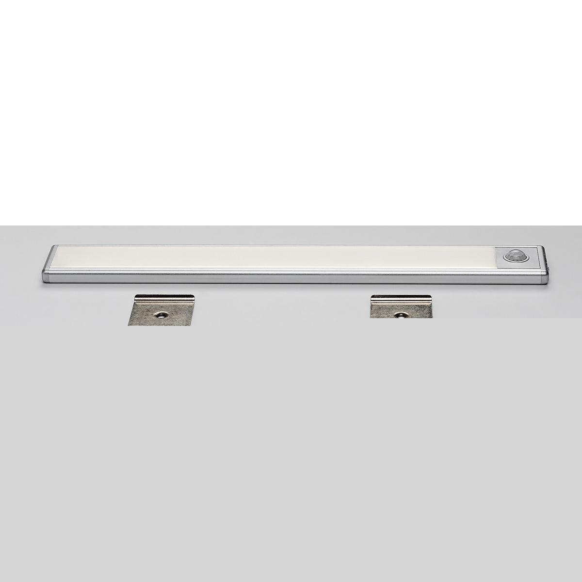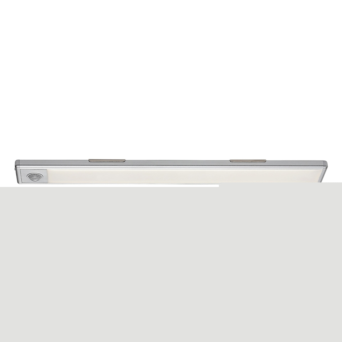 Moderno svetlo za ormarić Ivanna nudi praktično rešenje za osvetljenje u kuhinji koje štedi prostor. Lampa ima senzor pokreta i postavljena iznad kuhinjskog pulta efikasno podržava one koji rade u kuhinji. Svetlo srebrne boje je napravljeno od metala i plastike i dopunjeno je belim plastičnim abažurom koji pokriva ugrađeni LED izvor svetlosti energetske klase G. Sijalica ima snagu od 2 V, svetlosni tok od 120 lumena sa senkom, 150 lumena bez senke i životnim vekom od 25.000 sati. Temperatura boje sijalice je 4.000 K i zrači prirodno belo svetlo dajući čist, moderan efekat. Ova vrsta svetla je takođe idealna za rad u kuhinji. PIR senzor detektuje kretanje sa udaljenosti od 2-5 metara pod uglom gledanja od 100°. Pored toga, lampa je opremljena senzorom svetlosti. Napon Ivannine baterije je 3,7 V, njen kapacitet je 1100 mAh. Dimenzije svetla ormana su sledeće: širina 300 mm, visina 40 mm, rastojanje od zida samo 10 mm, dužina kabla 300 mm.