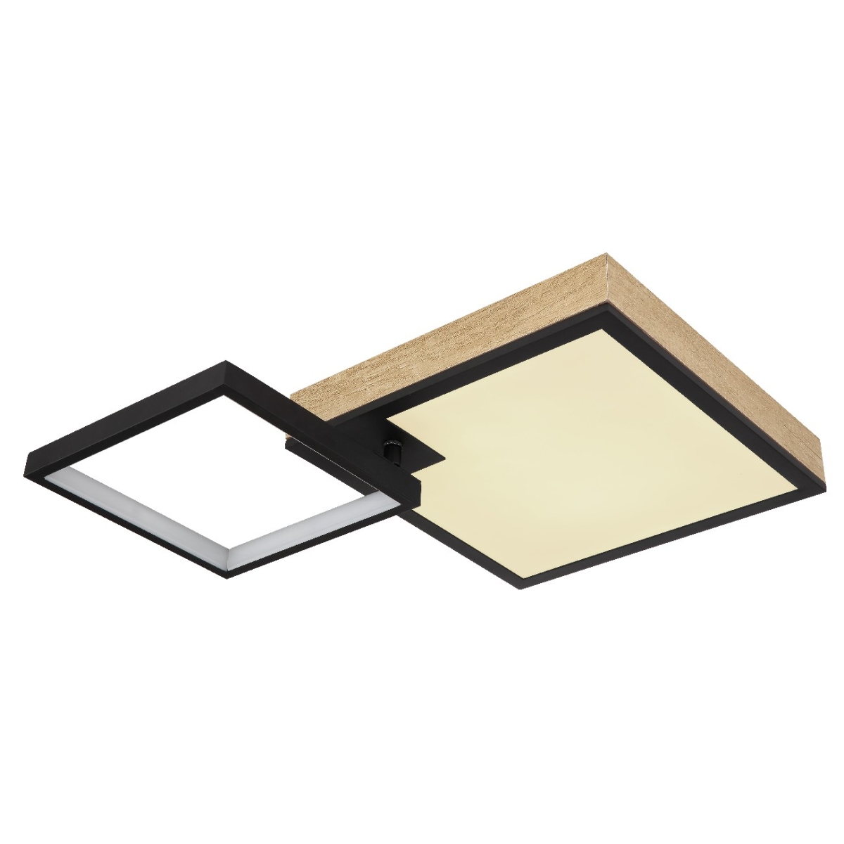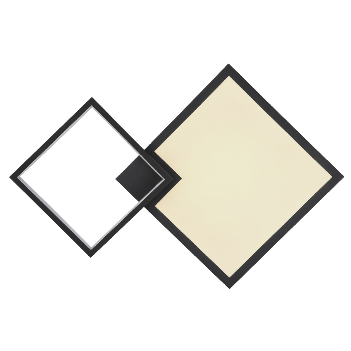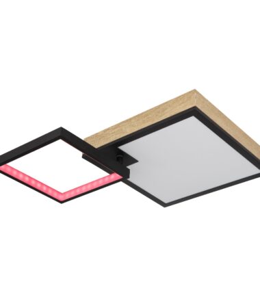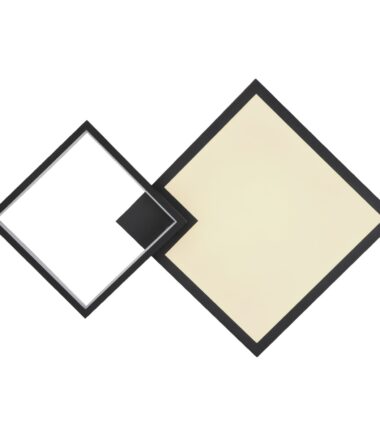Ova plafonska lampa serije JACKY ima crnu mat metalnu podlogu i tamni MDF optički pokrivač sa opalnom akrilnom pločom koja obezbeđuje difuziju svetlosne distribucije. Lampa je prigušena i ima nekoliko nivoa svetline koji se mogu kontrolisati preko zidnog prekidača. Boje lampe su fiksne i postoji RGB menjač boja koji vam omogućava da podesite različite boje. Boje se takođe mogu fiksirati i postoji efekat duge. Lampa ima funkciju memorije koja pamti poslednju podešenu jačinu i nivo boje. Može se rotirati i okretati, dolazi sa daljinskim upravljačem koji napajaju 2 AAA baterije. Dimenzije lampe su 600x410x100mm, mali kvadrat je 20x20cm a veliki kvadrat 29x29cm. Plafonjera ima integrisan LED sa 21W i naponom od 230V, koji obezbeđuje laganu proizvodnju od 215-2150lm. Temperatura boje se može podesiti između 2700-6500K. Pored toga, lampa ima RGB LED sa 3W i naponom od 230V.