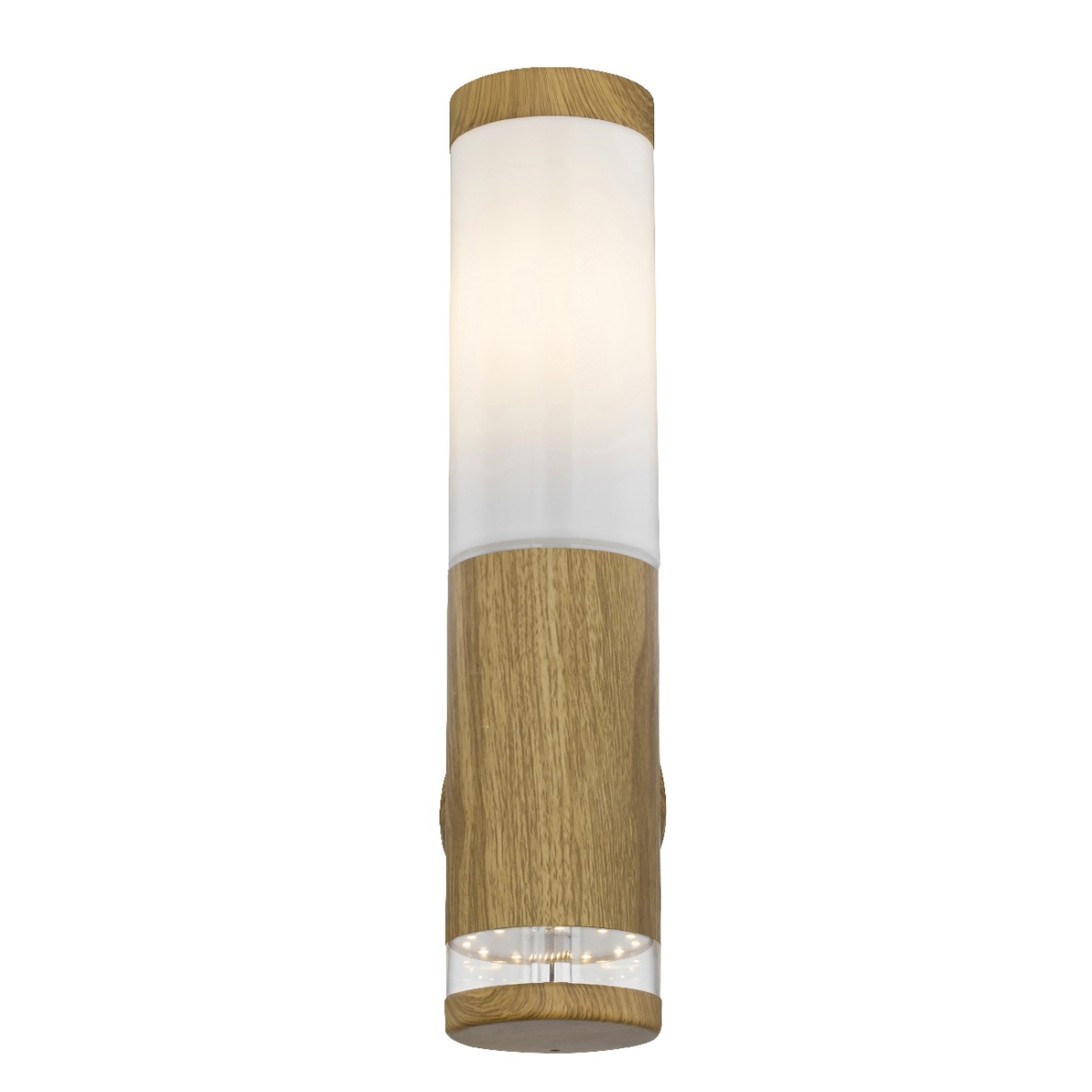 Ova spoljašnja zidna lampa iz serije JAICY ističe se svojim stilskim dizajnom napravljenim od nerđajućeg čelika nakil drvetu. Velika spoljašnja lampa veličine 35 cm sastoji se od cilindra od nerđajućeg čelika, koji je fiksiran za zid sa podlogom i ima plastični prsten na donjem kraju. Cilindar može biti opremljen i E27 LED sijalicom po vašem izboru, koja je potom prekrivena opalnom plastikom. To vam pruža mogućnost da pojedinačno odredite boju svetla i jačinu. Sa drugim modelima iste serije možete napraviti prijatan ambijent u vašem prostoru na otvorenom.