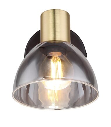 Elegantni, crni zidni spot impresionira mnoštvom različitih, različito obrađenih materijala. Crni metal čini osnovu na zidu, dok je grlo E14 okružena mesingano-mat materijalom. Staklo u boji dima upotpunjaje sliku. Zidna lampa visoka 11,5 centimetara se isključuje i isključuje pomoću prekidača. Zbog slobodnog izbora sijalica (E14/max. 25W), možete sami odrediti svetleći intenzitet i boju svetla ove unutrašnje lampe. Zbog njihove dugovečnosti i uštede energije preporučujemo LED sijalice. Drugi modeli u ovoj seriji vam omogućavaju da dodatno ulepšate svoj životni prostor.