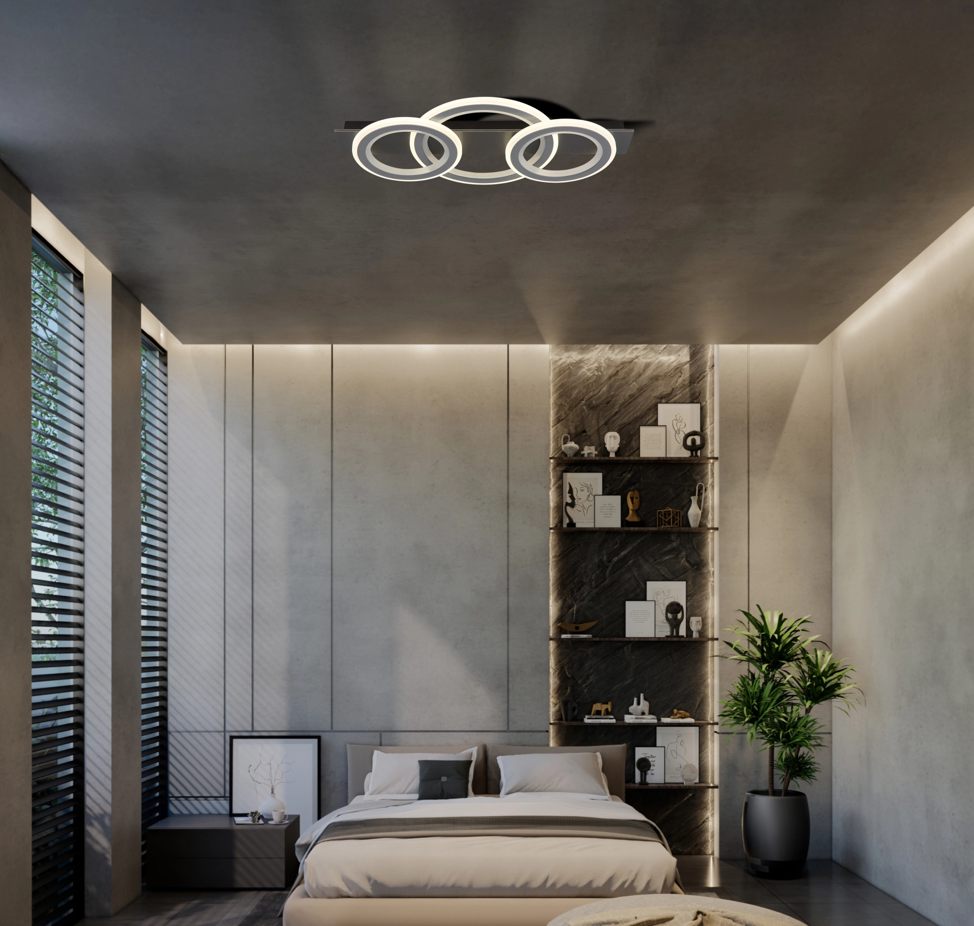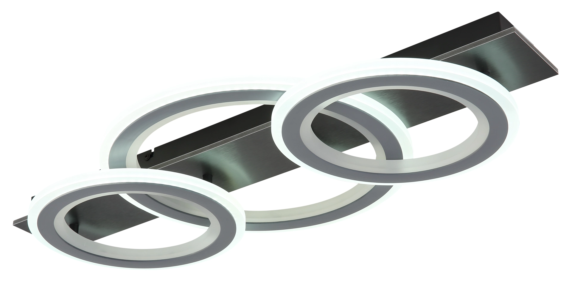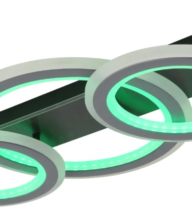 Pravougaona plafonska lampa JAYDEN kombinuje moderan dizajn sa inovativnim funkcijama. Telo napravljeno od crnog, mat metala i brušene sive plastike obezbeđuje elegantan i savremen izgled. Abažur napravljen od svetlo sivog metala i opal akrila nudi ravnomernu raspodelu svetlosti i stvara prijatnu atmosferu. Sa dužinom od 730 mm i širinom od 350 mm, lampa je idealna za veće prostorije. Zahvaljujući uključenom daljinskom upravljaču, svetlo se može prigušiti i nudi razne opcije podešavanja. Funkcija promene RGB boje vam omogućava da birate između različitih boja i uživate u efektu duge. Pored toga, RGB boja se može fiksirati kako bi se stvorila individualna atmosfera osvetljenja. Sa CCT od 2700K do 6500K, možete podesiti temperaturu boje po želji. Svetlo je takođe opremljeno praktičnom funkcijom memorije i dolazi sa LED diodom.