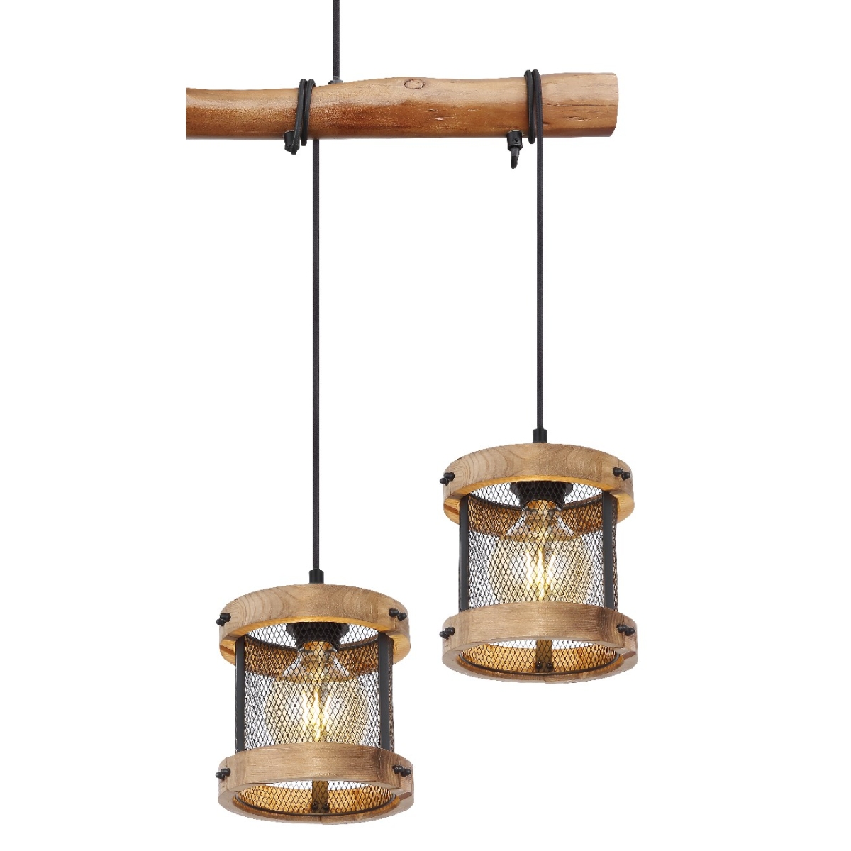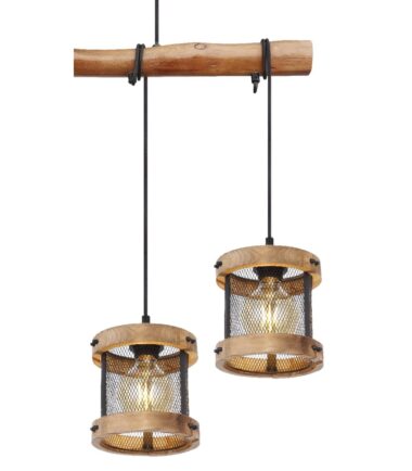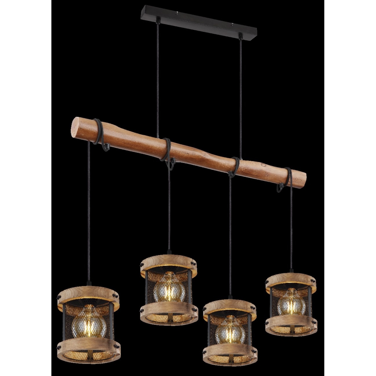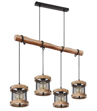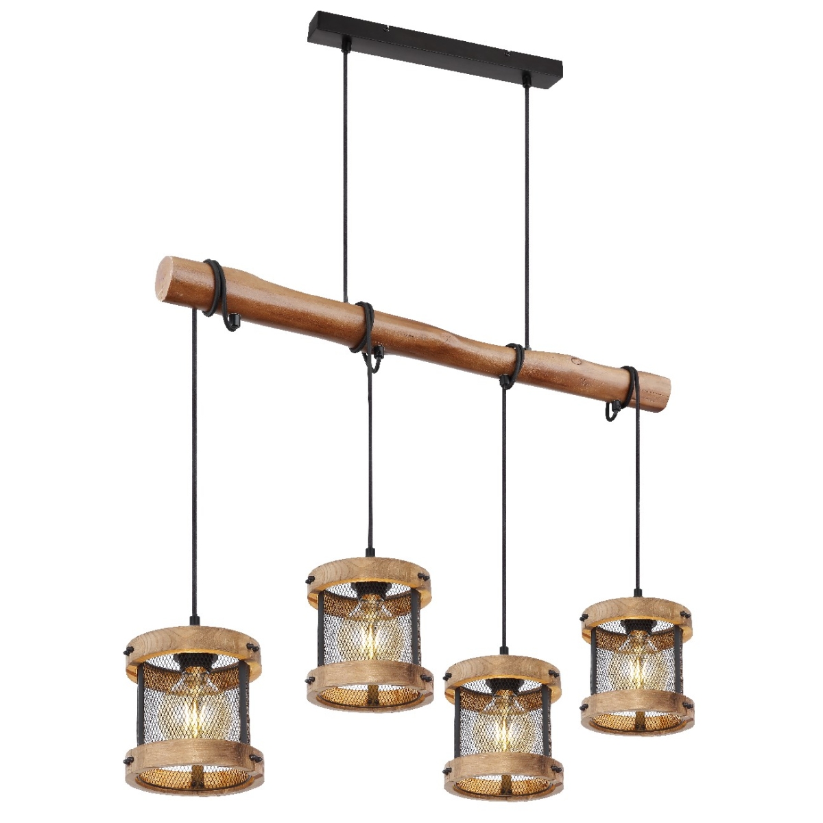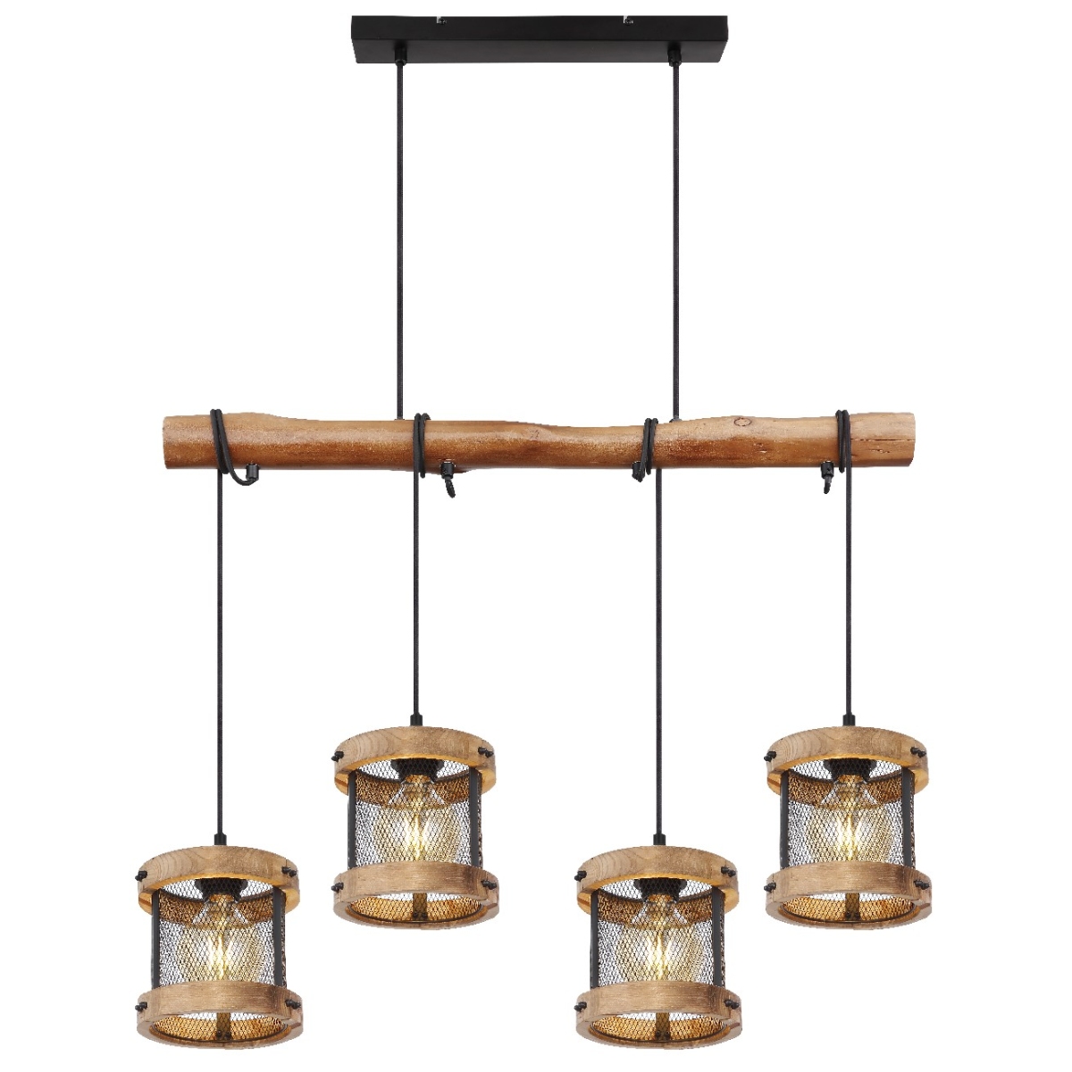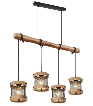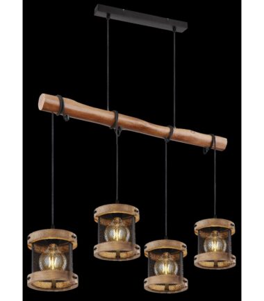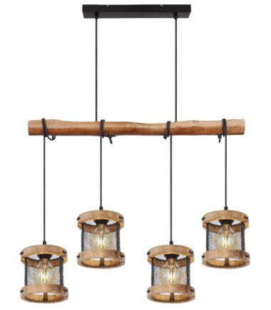Ova vanvremenska visilica inspiriše svojim prelepim dizajnom i postaje centar vašeg životnog prostora. Lampa se sastoji od četiri abažura sa drvenim ramom i metalnom mrežom koji visi na konopcima do 1,2m od plafona i mogu se umotati na drvenu granu visine 85cm i samim tim skratiti. Sastoji se od četiri E27 grla, lampa vam daje slobodan izbor sijalice do maksimalnog izlaza od 40 vati.