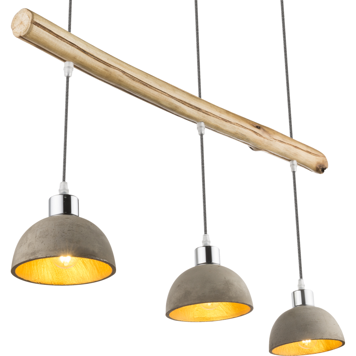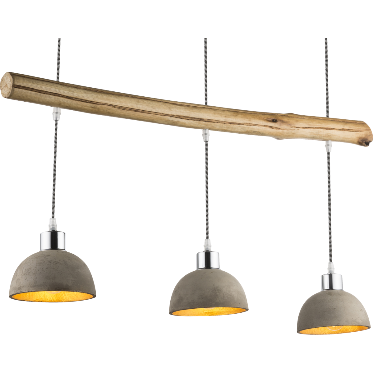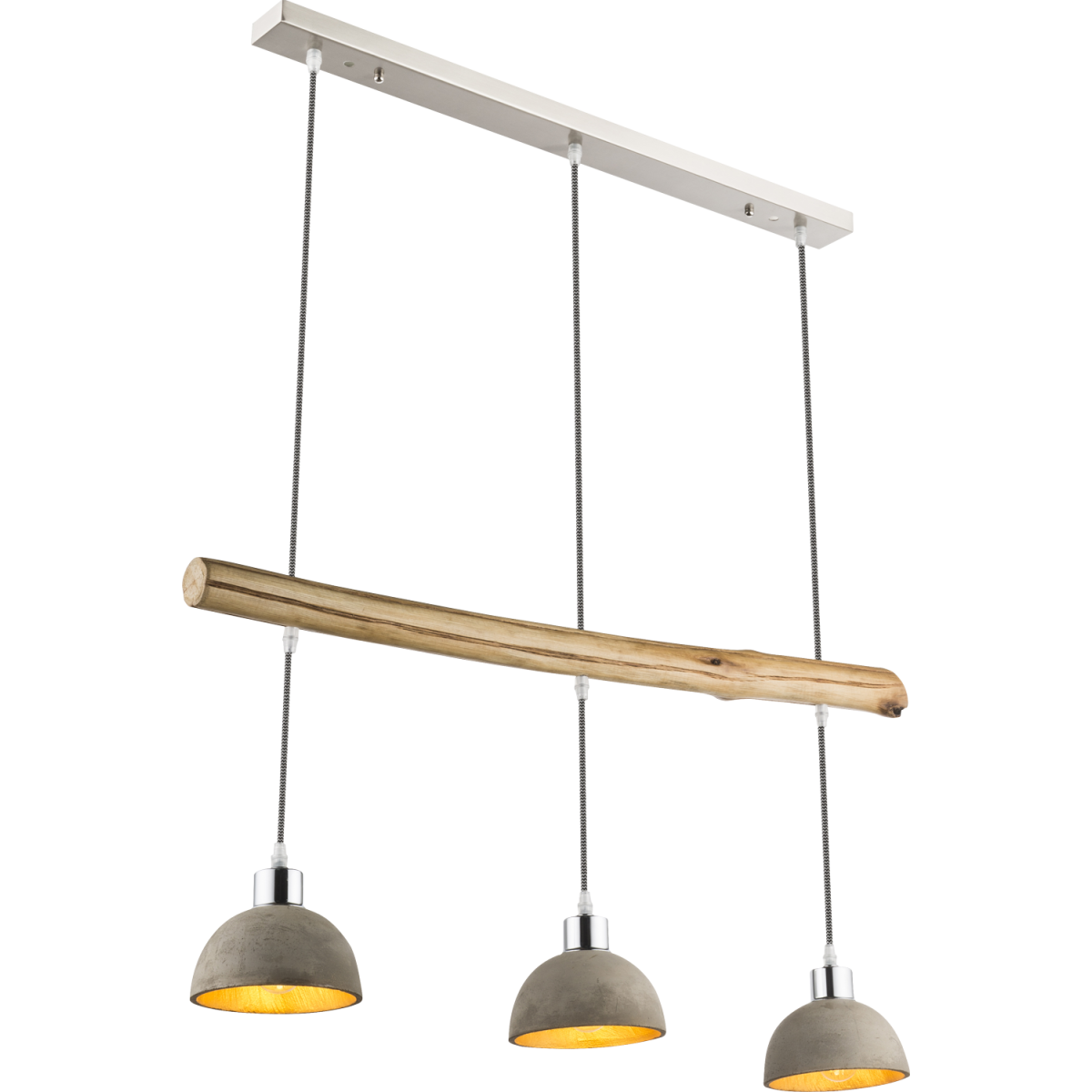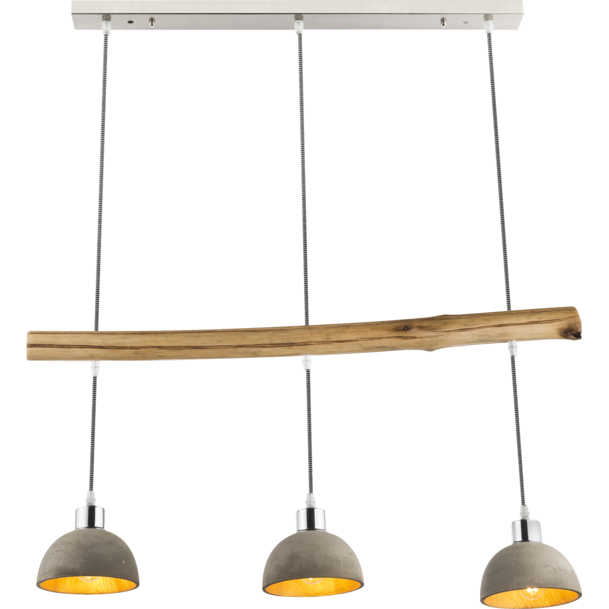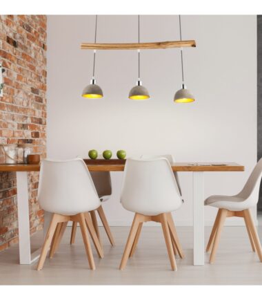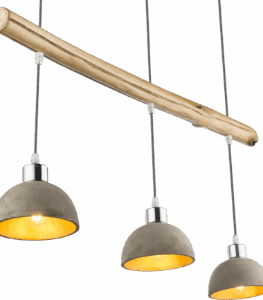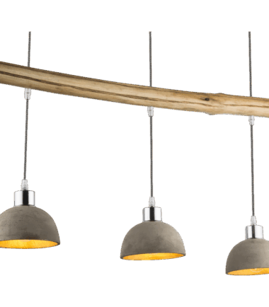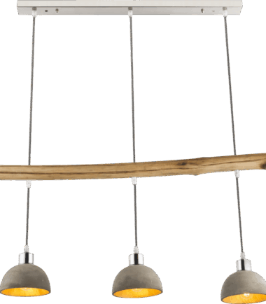 Viseća lampa JEBEL privlači pažnju, sastoji se od nikl-mat hemisferskih abažura, spolja u betonskim bojama i iznutra zlatne boje. Abažuri vise na tekstilnom kablu koji odgovara boji i omogućava vam, da kroz dostupna E27 grla, sami izaberete željeni izvor svetlosti (max. 40W), gde možete sami odrediti željeni intenzitet svetlosti i laganu boju. Za ovu viseću lampu preporučujemo LED sijalice, zbog njihove uštede energije i trajnosti.