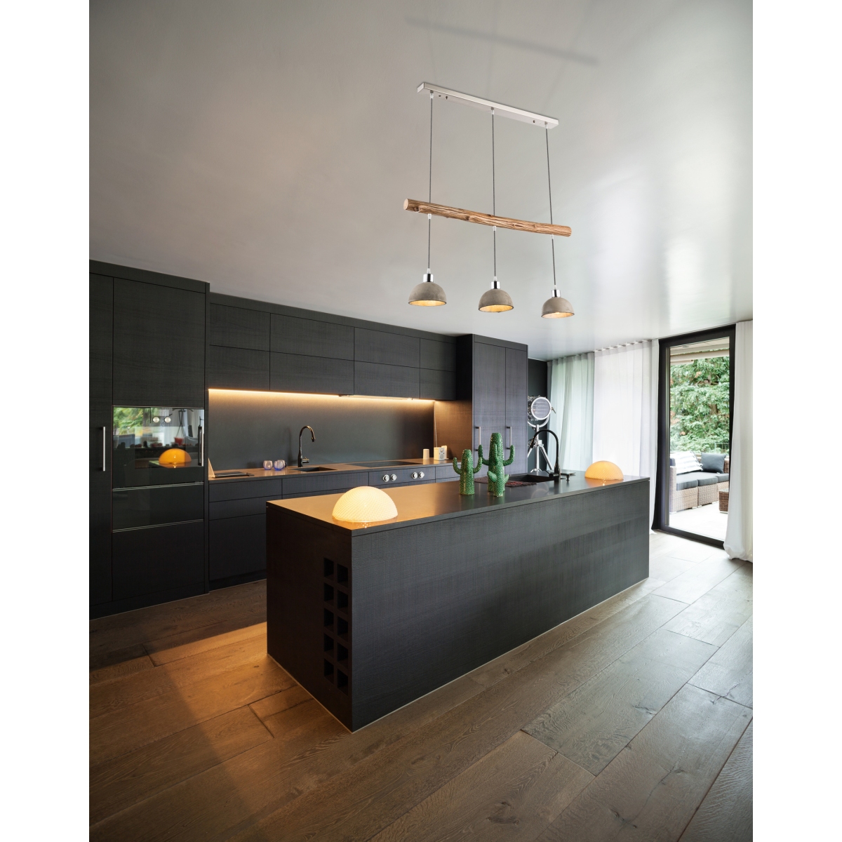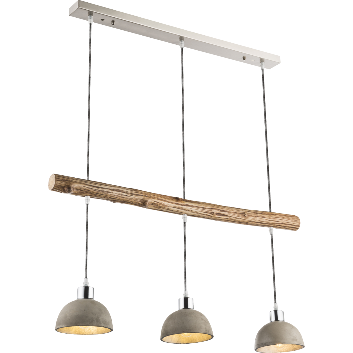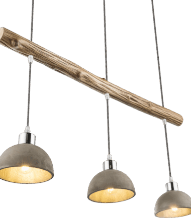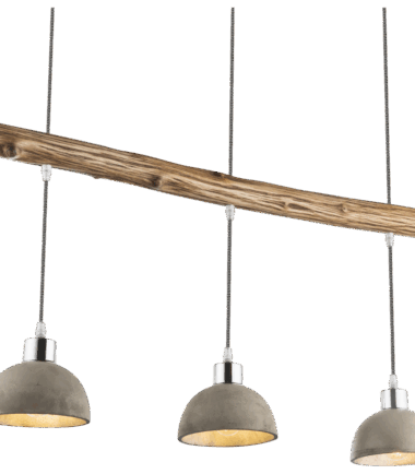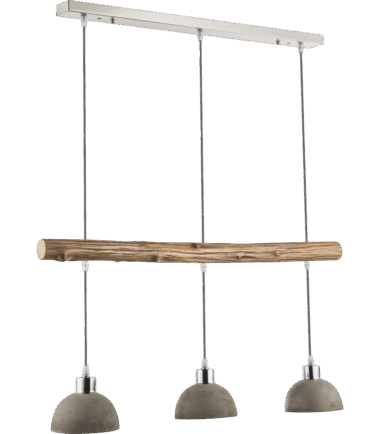 Visilica JEBEL privlačnog dizajna odlikuje se nikl-mat bojom. Tri hemisferska abažura, u betonskim bojama spolja i srebrne iznutra, vise na tekstilnim kablovima koji odgovaraju boji. Oblikovana drvena greda prikačena horizontalno na tekstilne kablove daje ovoj visilici poseban stil. Dostupna E27 grla vam omogućavaju da sami odredite osvetljenje i samim tim svetleći intenzitet i laganu boju (max. 40 vati). Zbog njihove uštede energije i dugovečnosti preporučujemo LED sijalice.