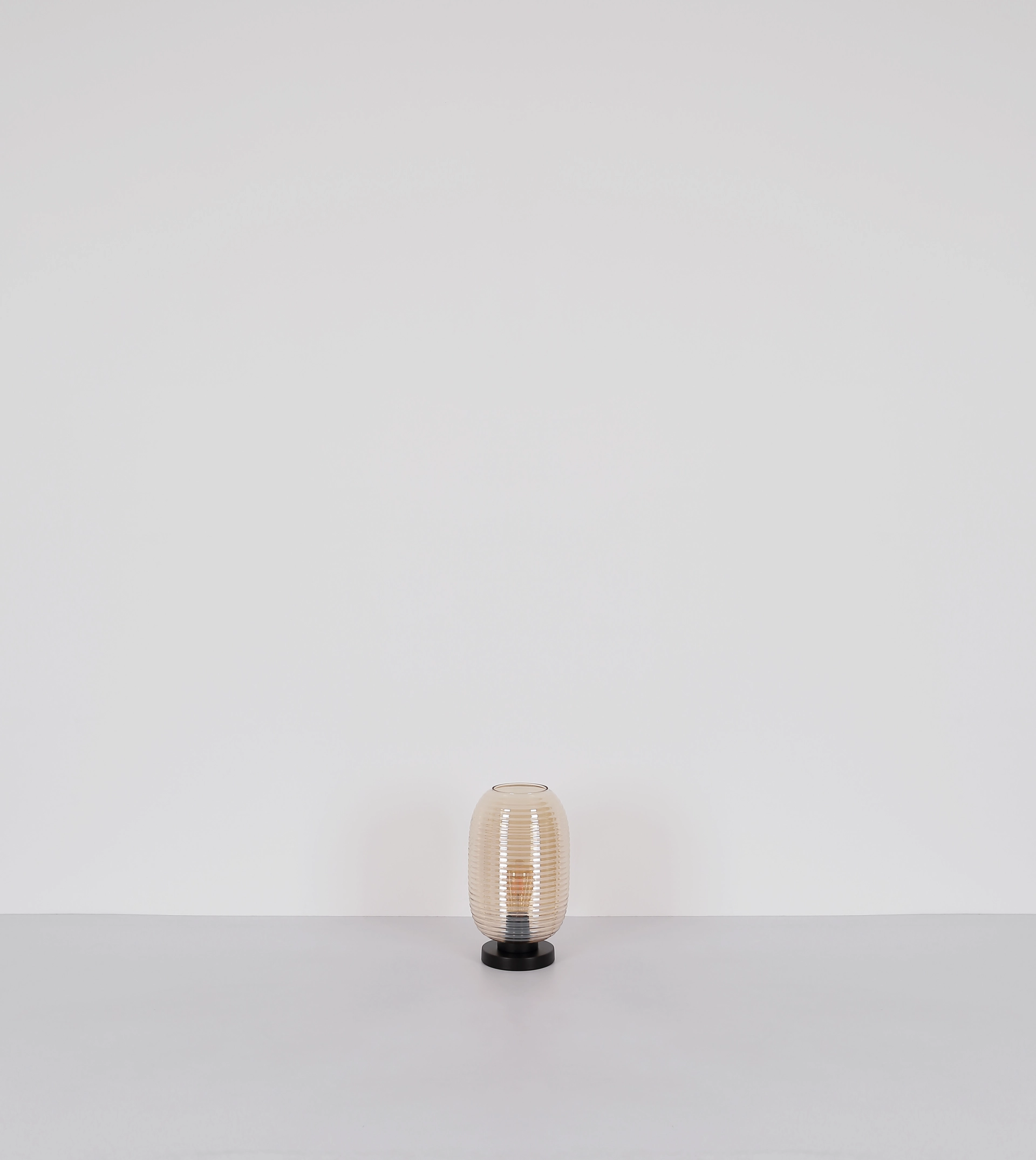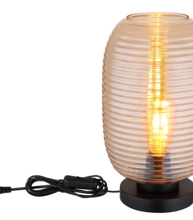 Stona lampa JEFREYi kombinuje moderan dizajn sa bezvremenskom elegancijom i biće vrhunac svake sobe. Okrugli, lukovičasti abažur napravljen od toplog, ćilibarnog stakla je vešto opremljen žlebovima koji ne samo da postavljaju vizuelne akcente, već i obezbeđuju prijatnu raspodelu svetlosti. Mat crno metalno kućište daje lampi stilski dodir i osigurava harmoničnu integraciju u različite stilove nameštaja. Sa prečnikom od 200 mm, stona lampa je savršena za komode, noćne stočiće ili radne stolove. Opremljena praktičnim prekidačem na kablu, omogućava praktičan rad. Stona lampa JEFREY zahteva sijalicu E27, koja nije uključena, što vam daje mogućnost da prilagodite svetlo svom ukusu. Unesite toplo svetlo i stilske akcente u svoj dom pomoću ove stone lampe!