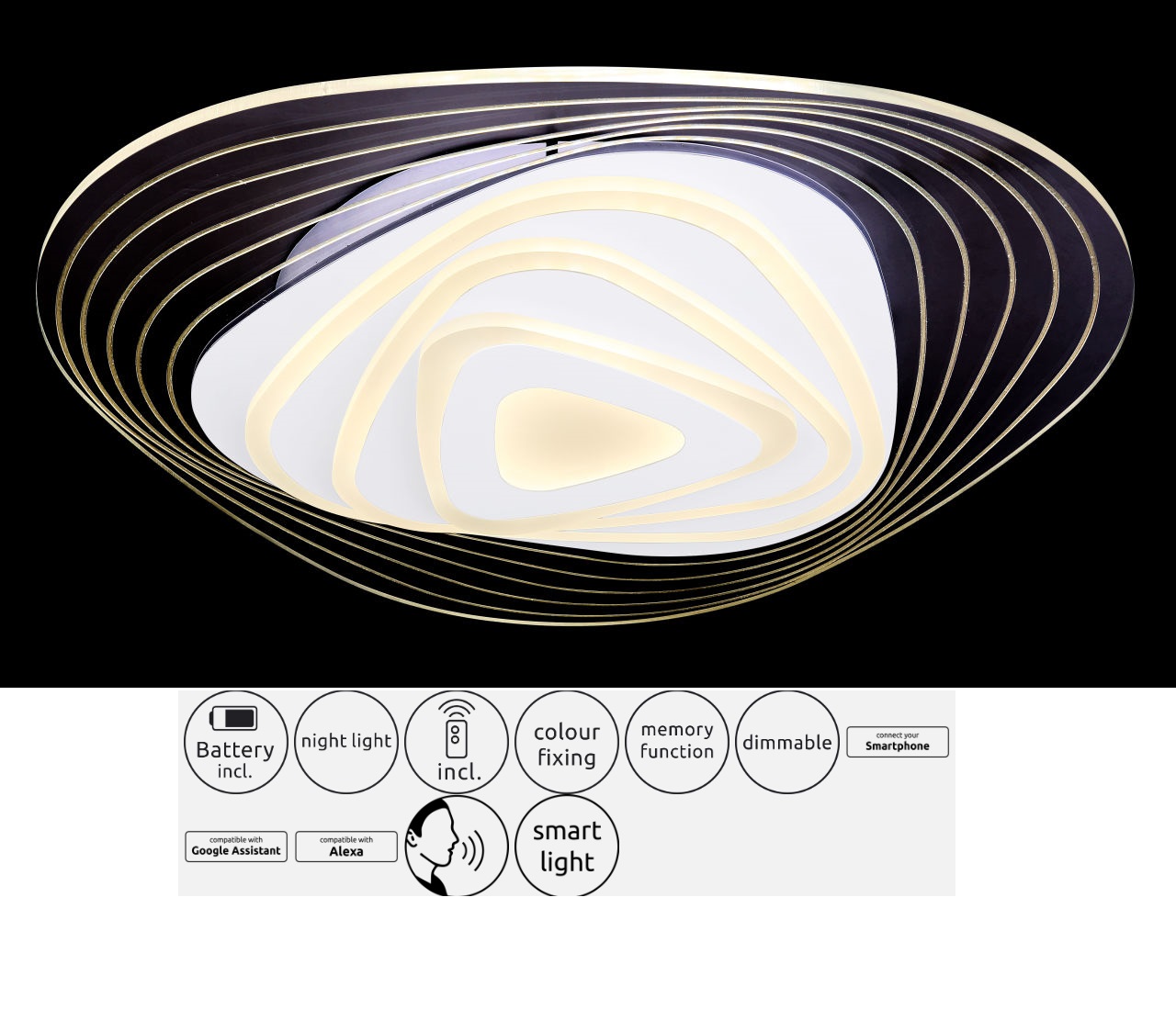 SMART plafonjera Jocelyn (Ø50 cm) donosi high-tech u vaša četiri zida. Opremljena je memorijskom funkcijom, mjenjačem boja i daljinskim upravljačem. Vrhunac je, međutim, funkcija Smart Home. Plafonjera ima LED ploču od 40 vati sa vekom trajanja od 20.000 sati. Ovom lampom Smartlight može se jednostavno upravljati pomoću Tuya Smart aplikacije (Android TM / IOS). Svetlo se može prigušiti, a njegova boja može se podesiti pomoću daljinskog upravljača (3000K-6000K). Glasovna kontrola je jednostavna s Amazon Echo Tm -om i Google Home.