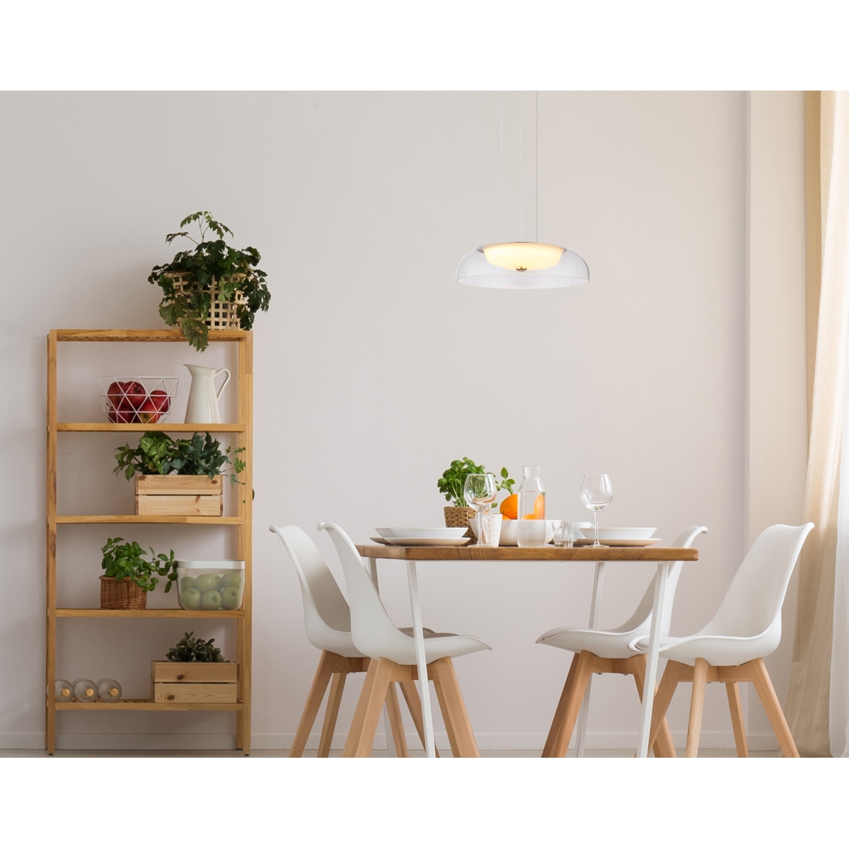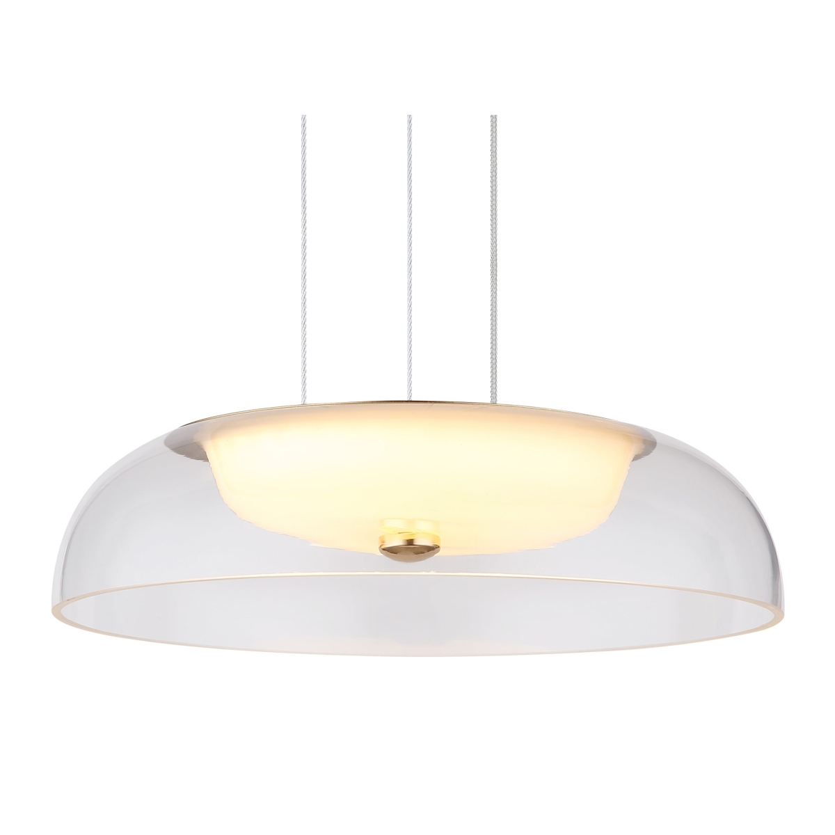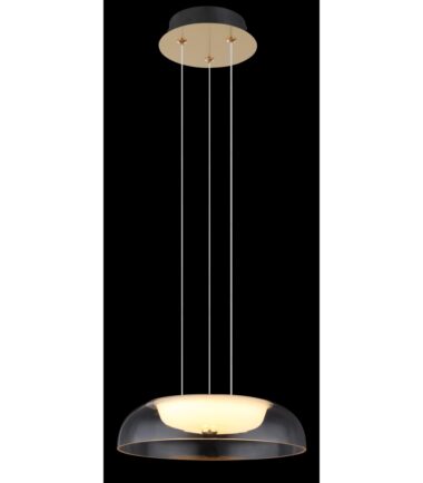 Ova moderna visilica iz serije JOCKY (ø 30 cm) može dodati elegantan izvor svetlosti vašem enterijeru. Visilica napravljena od mesinganog metala sastoji se od providnog staklenog abažura koja visi sa plafona na tri kabla i opremljena je uključenim LED sijalicama prekrivenim satiniranim staklom. Oni obezbeđuju 1238 lumena svetlosti sa prijatnom svetlom bojom od 3000 Kelvina (topla bela). Pored toga, visina se može podesiti i do 120 cm tokom instalacije. Pomoću ostalih artikala iste serije možete da dovršite celokupnu sliku u svoja četiri zida.