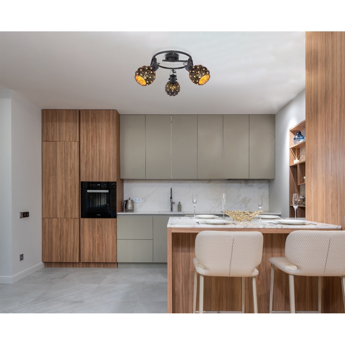 Tri reflektora iz serije JODIE opisuju sebe kao neobične i stilizovane. Crni mat abažur omamljuje sa mnogo prelepih K9 kristala, koji vašem domu daju veoma poseban šmek. Pošto se sijalice (E27 max. 40 W) mogu slobodno izabrati, možete sami odlučiti u kojoj boji svetla i kojim intenzitetom će vaša četiri zida sijati. Pored toga, abažuri su podesivi tako da stvaraju optimalan rezultat osvetljenja.