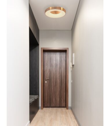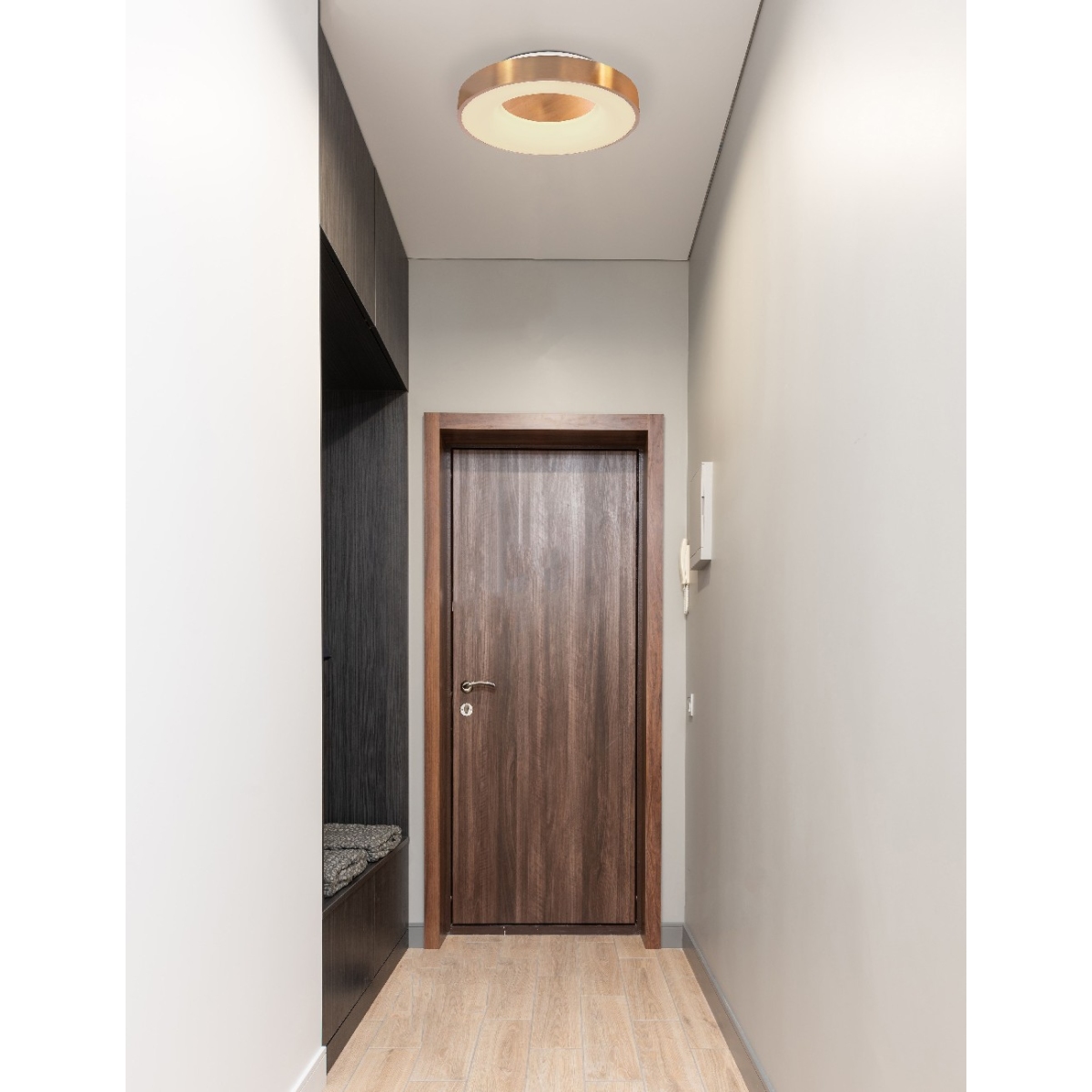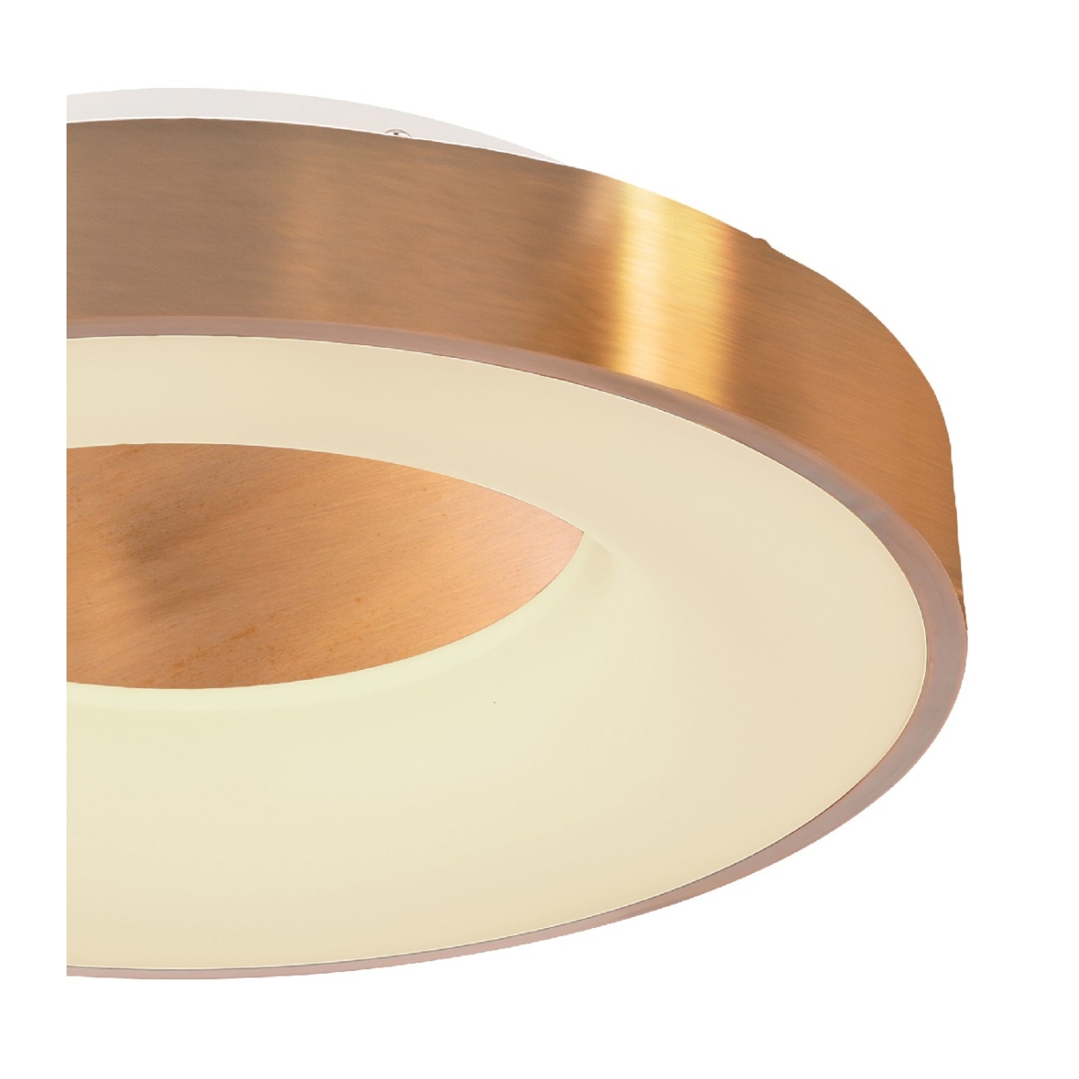 Ova okrugla plafonska lampa iz serije JOLLI (ø 40 cm) je divan dodatak vašem enterijeru. Sastoji se od metalne ploče bakarne boje oko koje je fiksiran metalni prsten iste boje. Prostor između je obezbeđen opalnom plastikom, koja pokriva uključene LED sijalice, koje obezbeđuju 1800 lumena jake svetlosti. Pomoću daljinskog upravljača možete ne samo da prigušite svetlo, već i pojedinačno da podesite boju svetla u nekoliko koraka između 2700 Kelvina (toplo belo) i 6000 Kelvina (hladno belo) i da imate funkciju noćnog svetla. Sa ostalim modelima iste serije možete upotpuniti celokupnu sliku u svoja četiri zida i obezbediti elegantan ambijent.