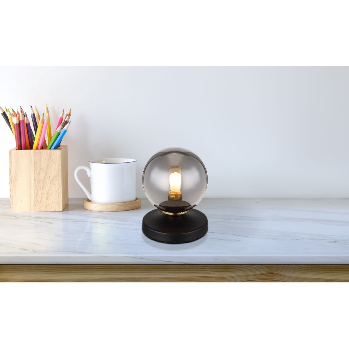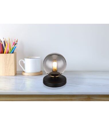 Ova jednostavna stona lampa inspiriše prelepim bojama. Iz okrugle baze istureno je grlo G9 sa prelepom staklenom kuglom u boji dima (Ø10cm). Grlo G9 vam omogućava maksimalnu snagu od 25 vati, kako biste sami odredili boju svetla i jačinu.