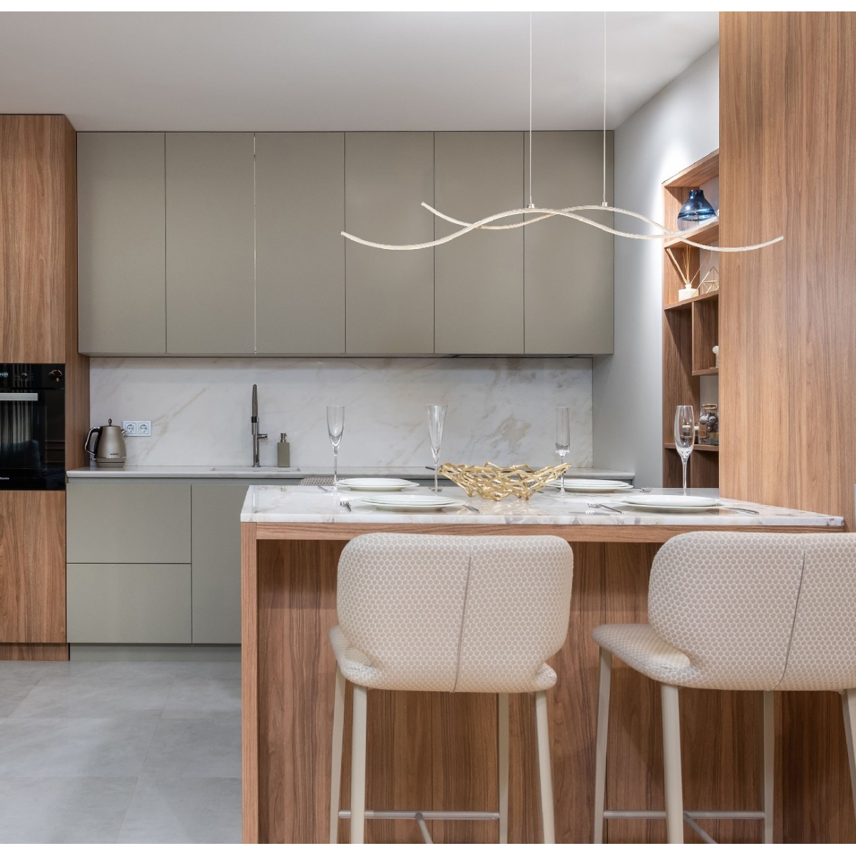 Sa ovom umetničkom visilicom, serija JORNE, koja poentira pre svega svojim neobičnim dizajnom, svetleći akcenti postavljeni su zbog integrisanih K5 kristala i folije kristalnog efekta. Koristi se, na primer, u dnevnoj sobi ili spavaćoj sobi, ova visilica, sa prelepo zakrivljenim svetlosnim granama, može doprineti elegantnom okruženju. Ova dizajnerska lampa sija standardno sa 2100 lumena jakim i 3000K toplom belom svetlošću. Uz ostale razne modele (stone lampe, podne lampe) ove serije možete upotpuniti sliku u svom životnom prostoru.