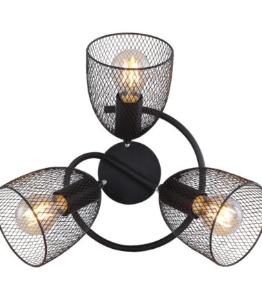 Plafonska lampa iz serije JOSINA. Abažur napravljen od metalne mreže crna boja. Ova moderna lampa ima prečnik od 25cm i daje prijatno toplo svetlo. Tri tipična E27 grla vam nude mogućnost da sami odaberete sijalicu. Pogodana je za dnevni boravak, trpezariju i spavaće sobe. Drugi modeli ove serije upotpuniće vaš životni prostor.