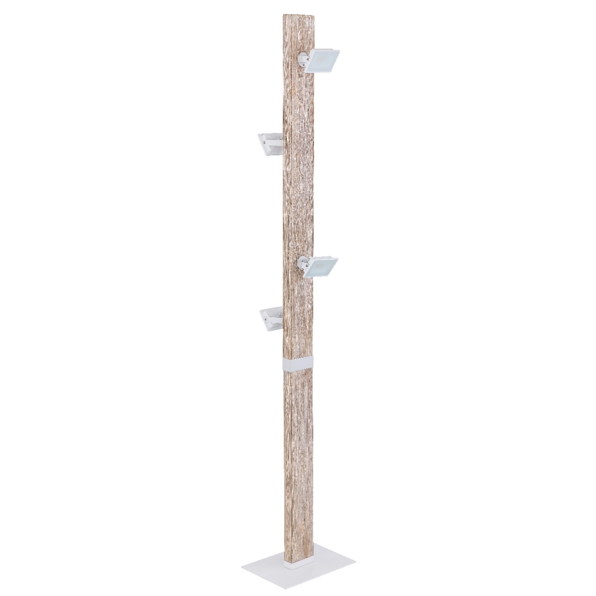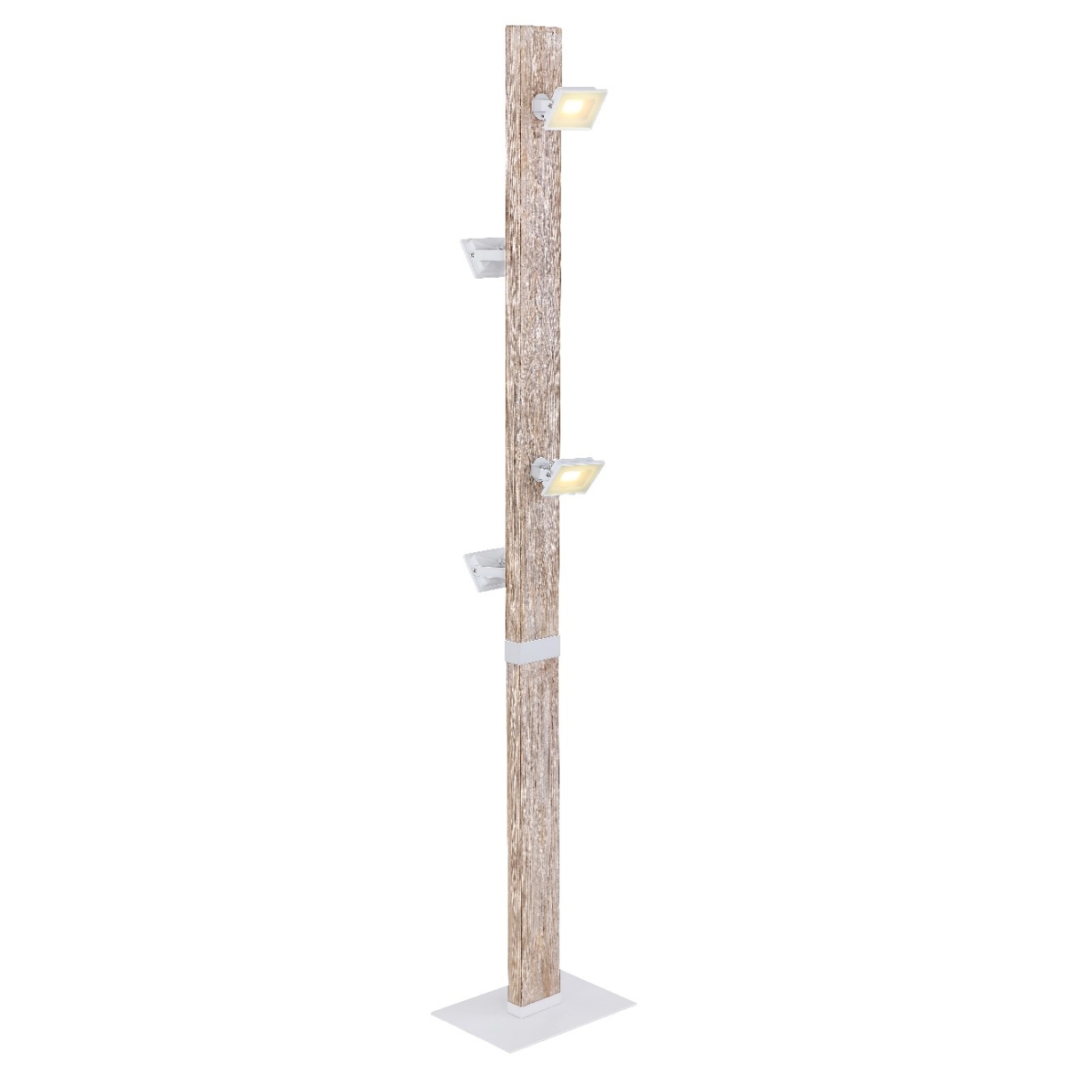 Ova podna lampa iz serije JOYA može se divno kombinovati zahvaljujući svom elegantnom dizajnu napravljenom od belog metala i drveta. Veliki 1,4 m, ugaoni drveni stub fiksiran je za belu metalnu baznu ploču i opremljen sa četiri reflektora. Reflektori su obezbeđeni satiniranim gotovim staklom i zahvaljujući uključenim LED sijalicama, obezbeđuju 1680 lumena jake svetlosti prijatne svetlosne boje od 3000 Kelvina (topla bela). Pored toga, podna lampa možete lako uključiti ili isključiti pomoću uključenog prekidača. Uz nekoliko artikala serije JOYA, možete upotpuniti celokupnu sliku svog enterijera i stvoriti udoban ambijent.