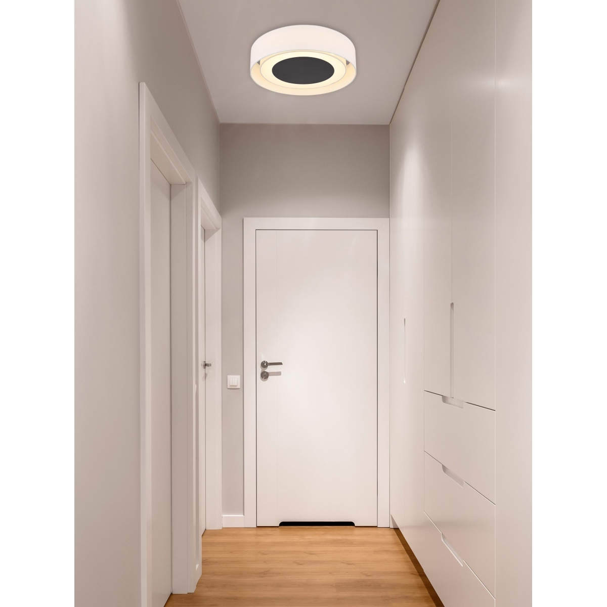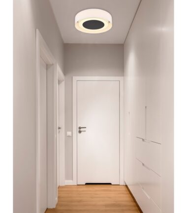 Ova okrugla plafonska lampa iz serije JUDITH (ø 45 cm) je predivan dodatak vašem enterijeru. Crni metal na sredini plafonske lampe okružen je opalnim plastičnim prstenom i bež tekstilnim ramom, što doprinosi njegovom savršeno oblikovanom izgledu. Sa uključenim LED sijalicama, plafonska svetlost obezbeđuje 710 lumena jako svetlo prijatnom svetlom bojom od 3000 Kelvina (topla bela). Uz ostale artikle iste serije možete da dovršite celokupnu sliku u svom domu i obezbedite elegantan ambijent.