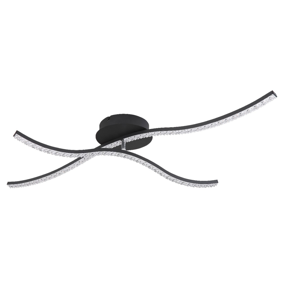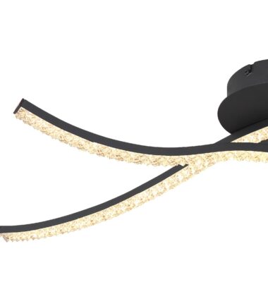 Ova plafonska lampa iz serije JULES ističe se svojim elegantnim dizajnom napravljenim od crno-mat metala. Plafonska lampa dugačka 91 cm sastoji se od dve ukrštene i oblikovane zakrivljene metalne grane, koje su obezbeđene prelepim, providnim akrilnim kristalima. Orjentacija gornje grane se može podesiti. Osim toga, LED sijalice prekrivene akrilnim kristalima obezbeđuju 1300 lumena jako svetlo prijatnom svetlom bojom od 3000 Kelvina (topla bela). Sa ostalim modelima iste serije možete da kreirate elegantan ambijent u svom enterijeru i upotpunite celokupnu sliku.
