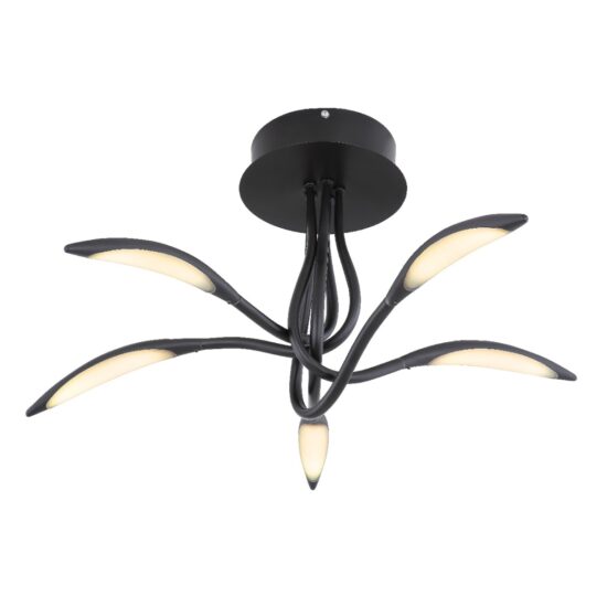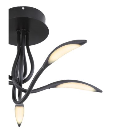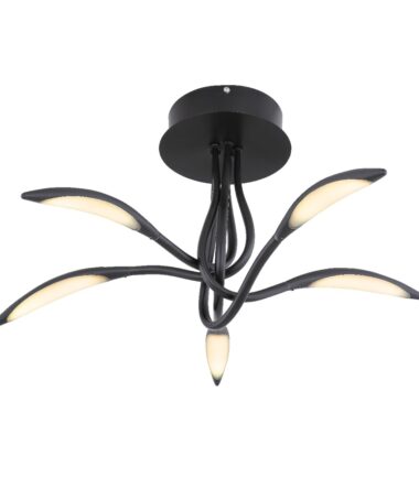 Ova oblikovana plafonska lampa iz serije KAELA (ø 68 cm) impresionira svojim neobičnim dizajnom crno-mat metal i opalni akrila. Pet prelepo zakrivljenih metalnih grana obezbeđeno je na krajevima sa opalnim akrilima, koji pokrivaju uključene LED sijalice. Pored toga, plafonska lampa obezbeđuje 940 lumena jako svetlo sa elegantnom svetlom bojom od 3000 Kelvina (topla bela). Ostalim artiklima serije Kaela možete upotpuniti celokupnu sliku vašeg enterijera i stvoriti prijatan ambijent.