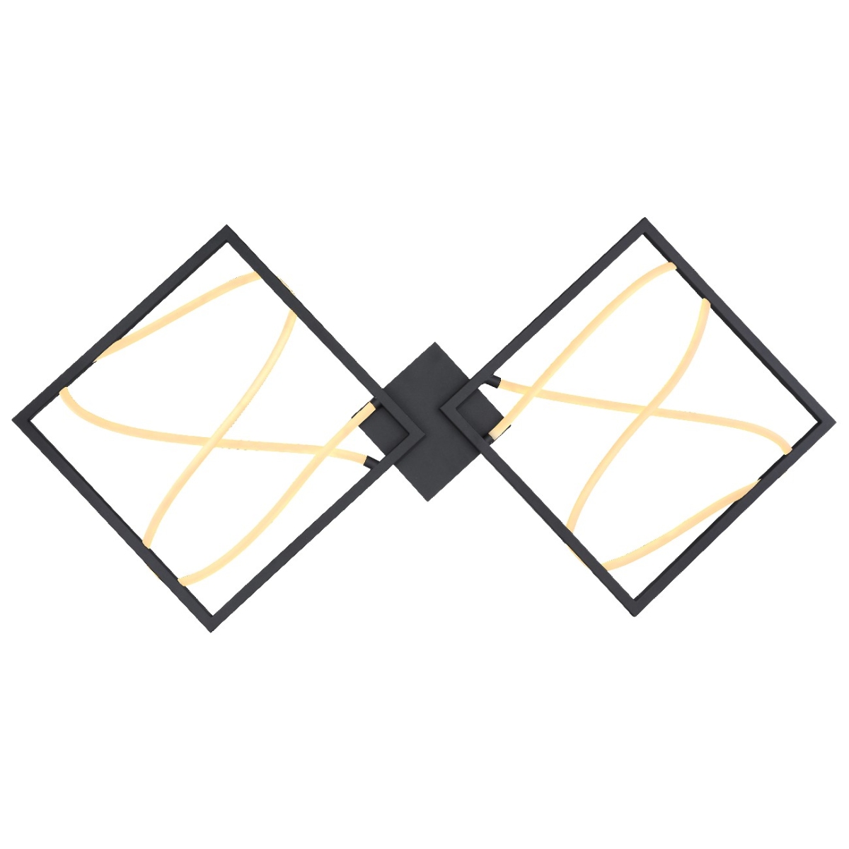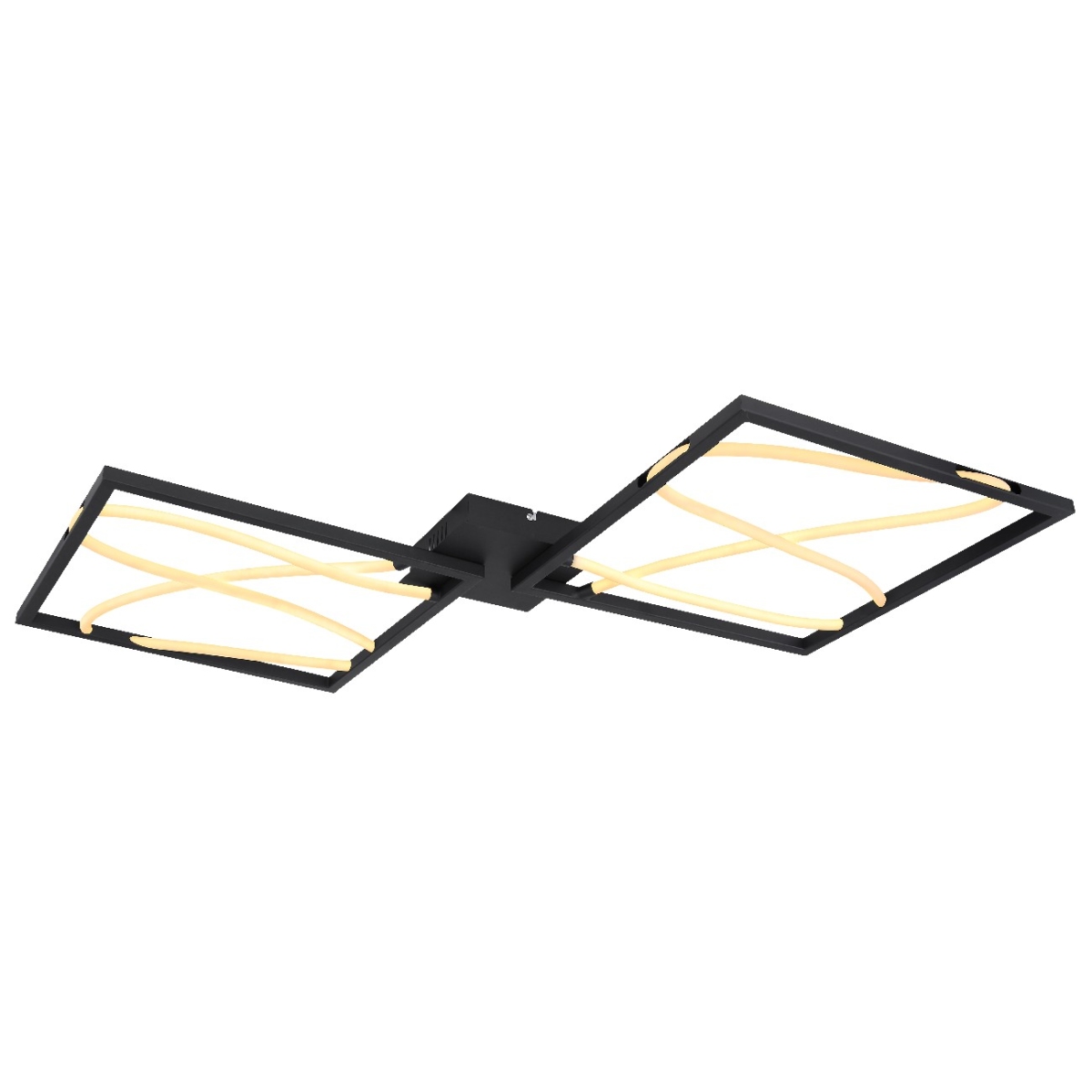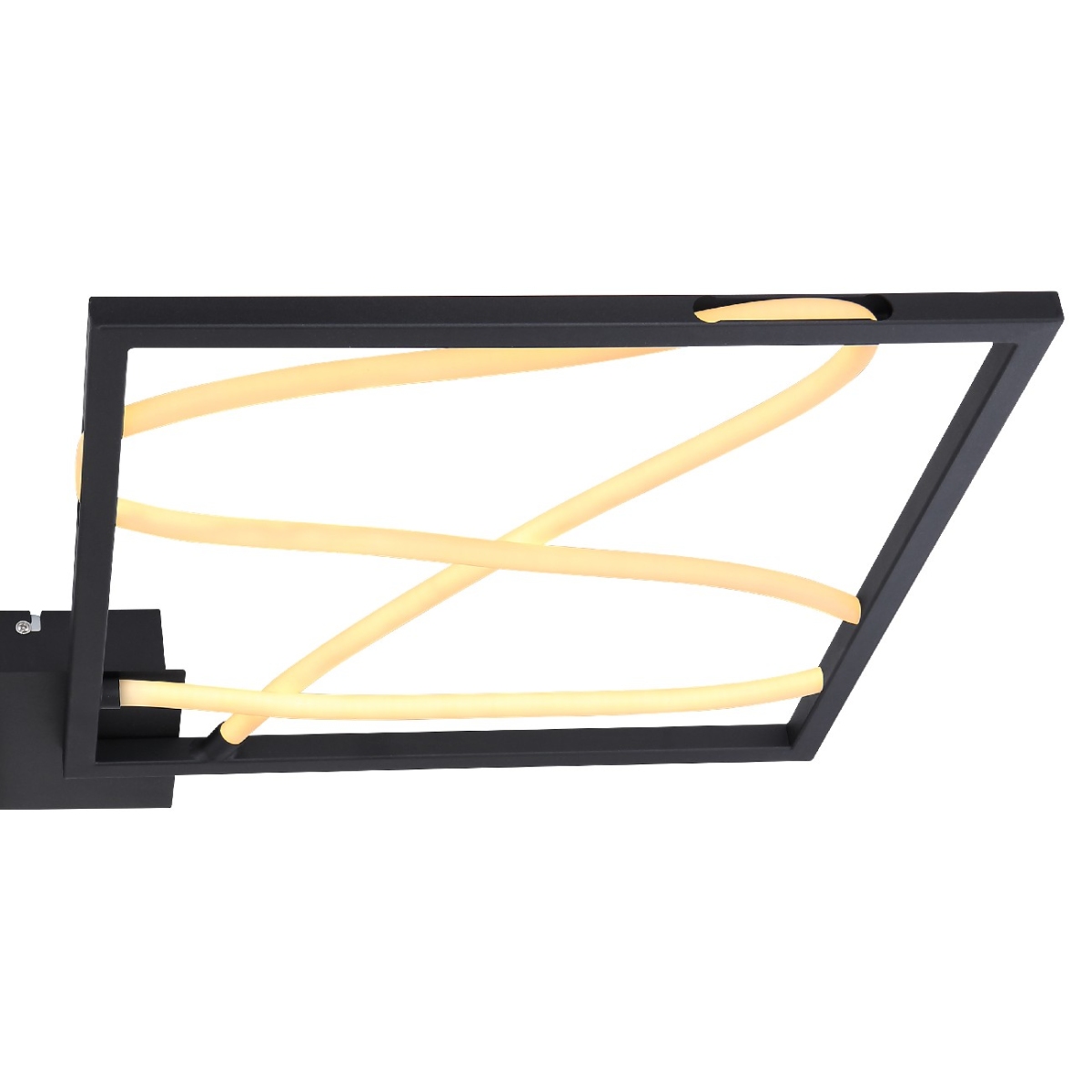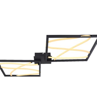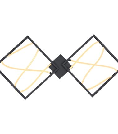 Ova plafonska lampa iz serije KAIA ističe se svojim modernim dizajnom napravljenim od crno-mat metala i opalne plastike. Dva kvadratna metalna rama (svaki 40×40 cm) su divno preslikana i svaki sa prelepo zakrivljenom šipkom napravljenom od opalne plastike, što visilicu čini privlačnom. Pored toga, obezbeđuje 1560 lumena jake svetlosti sa prijatnim svetlom bojom od 3000 Kelvina (topla bela). Sa ostalim artiklima serije Kaia možete upotpuniti celokupnu sliku vašeg enterijera.
