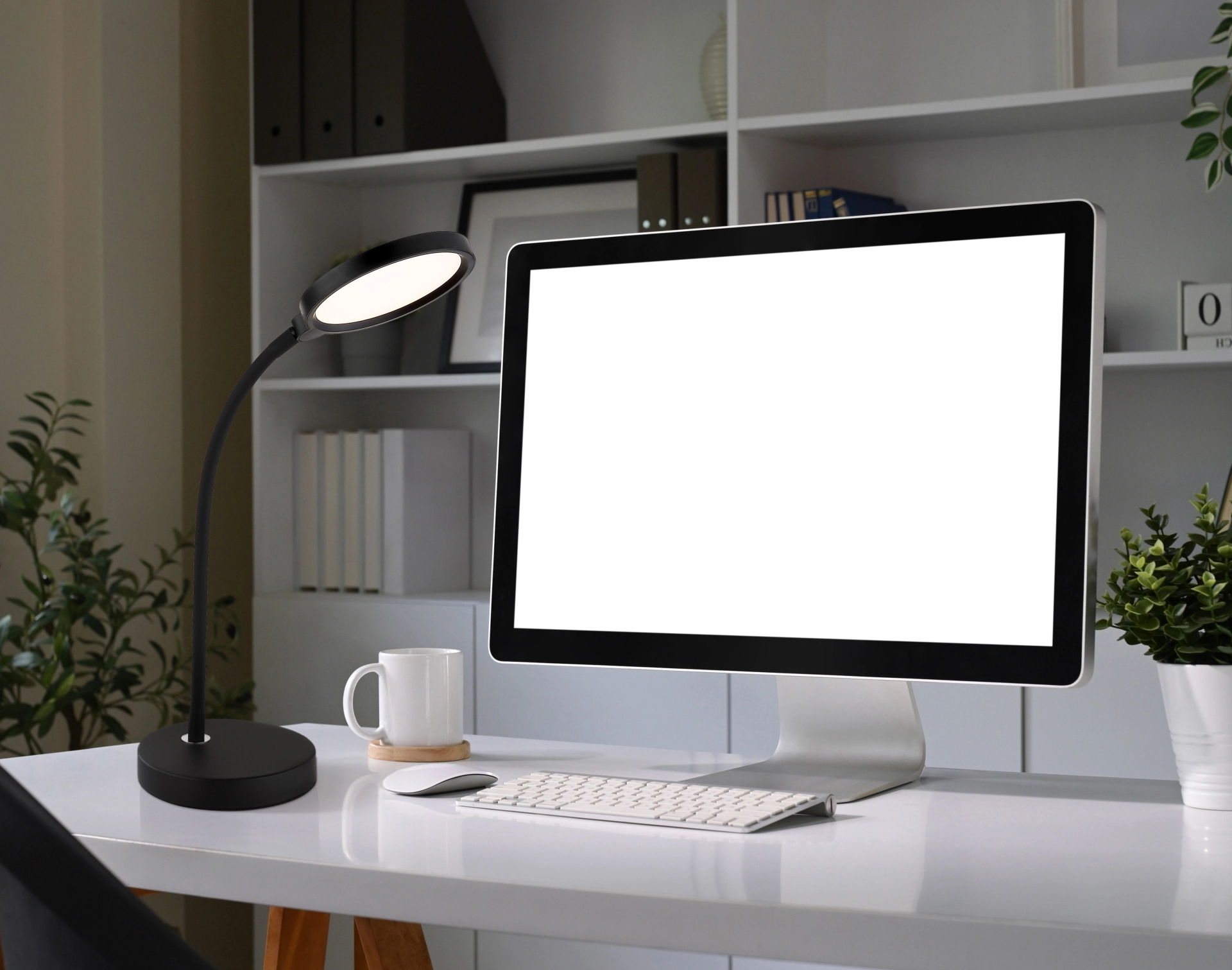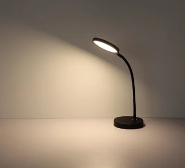 Okrugla stona lampa KALDERON impresionira svojim modernim dizajnom, funkcionalnom Flexo karakteristikom i ravnim, okruglim abažurom koji pruža ravnomernu raspodelu svetlosti. Telo napravljeno od mat crnog metala, u kombinaciji sa mat crnom i opalnom plastikom, naglašava visokokvalitetni izgled lampe. Sa dužinom od 430 mm i širinom od 150 mm, KALDERON se savršeno uklapa na stolove, noćne stočiće ili radne površine. Lampa ima besstepeni dodirni dimer sa Touch On/Off funkcijom i podesivom temperaturom boje od 2700 K do 6000 K. Moćan LED adapter isporučuje 640 lumena za efikasno, energetski štedljivo osvetljenje. KALDERON kombinuje vrhunske materijale, moderan dizajn i fleksibilnu LED tehnologiju u elegantnu stonu lampu koja je i praktična i stilska.