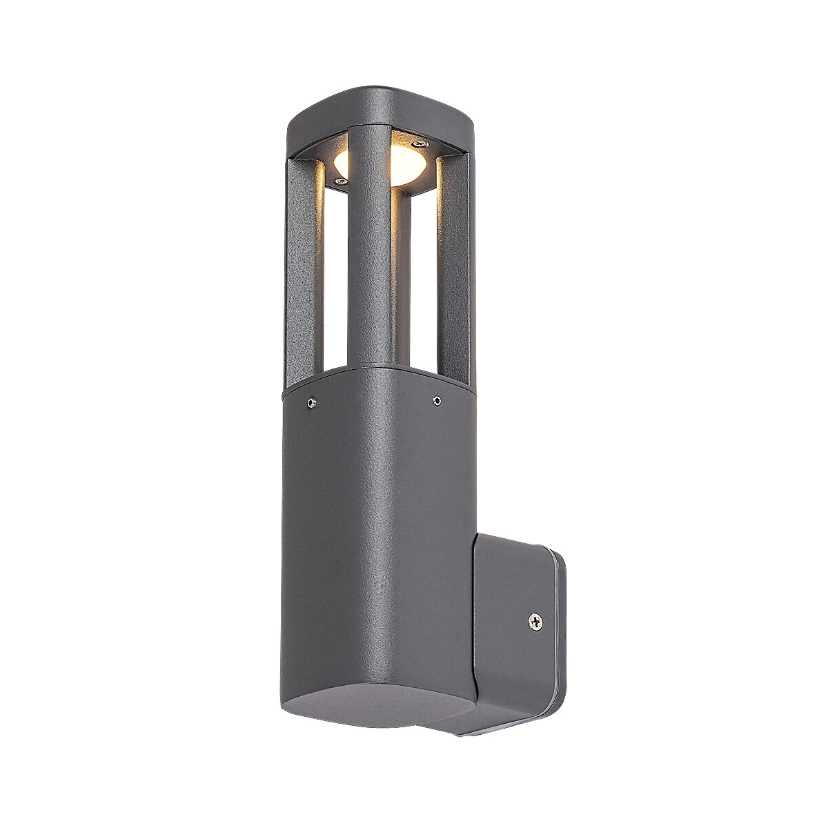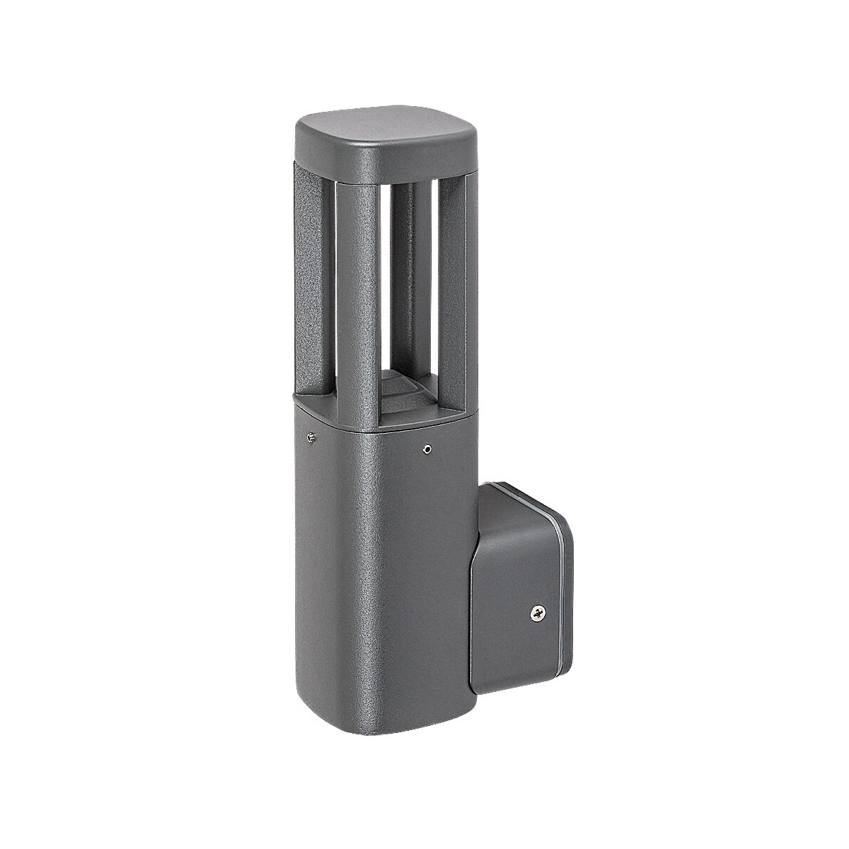 Moderna spoljna zidna lampa Kalisz je odličan izbor za vašu terasu ili spoljašnji zid kuće ako tražite lampu suzdržanog izgleda koja je istovremeno izdržljiva i koja se nosi sa ekstremnim vremenskim uslovima. Pravougaoni model u antracit boji izrađen je od aluminijuma zaobljenog oblika, dok je materijal belog abažura plastika. Mala dekorativna osnova je pričvršćena za donji deo lampe. Ova zidna lampa ima ugrađeni LED izvor svetlosti energetske klase G snage 7 V, svetlosnog toka od 250 lumena sa senkom i 700 lumena bez senke i životnog veka od 30.000 sati. Izvor svetlosti ima temperaturu boje od 3000 K i shodno tome zrači toplo belo svetlo. Dimenzije spoljnog svetla su sledeće: širina 70 mm, visina 250 mm, rastojanje od zida 110 mm, prečnik ugradnje 70 mm. Kalisz ima IP54 zaštitu koja osigurava da je zaštićen od prašine i prskanja vode iz bilo kog pravca. Njegov idealan opseg radne temperature je -30 °C do 50 °C.