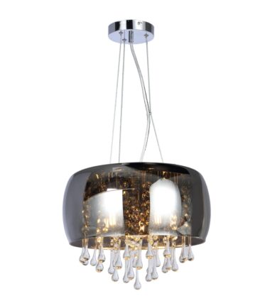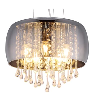 Ova ekskluzivna visilicana serije KALLA pruža vašem prostoru za dnevni boravak/ručavanje i spavanje jedinstvenu atmosferu. Okrugla, hromirana visilica prodire u sobu 120cm, prečnika 35 cm, ističe se se sa staklenom abažurom u boji dima, koji prelepo obavija providne staklene kristale. Zbog slobodnog izbora sijalica (5 x E14/max. 25W) možete sami odrediti intenzitet svetlosti i boju svetla ove unutrašnje lampe. Zbog njihove dugovečnosti i uštede energije preporučujemo LED sijalice. Sa ostalim modelima ove serije možete učiniti vaš životni prostor još lepšim.