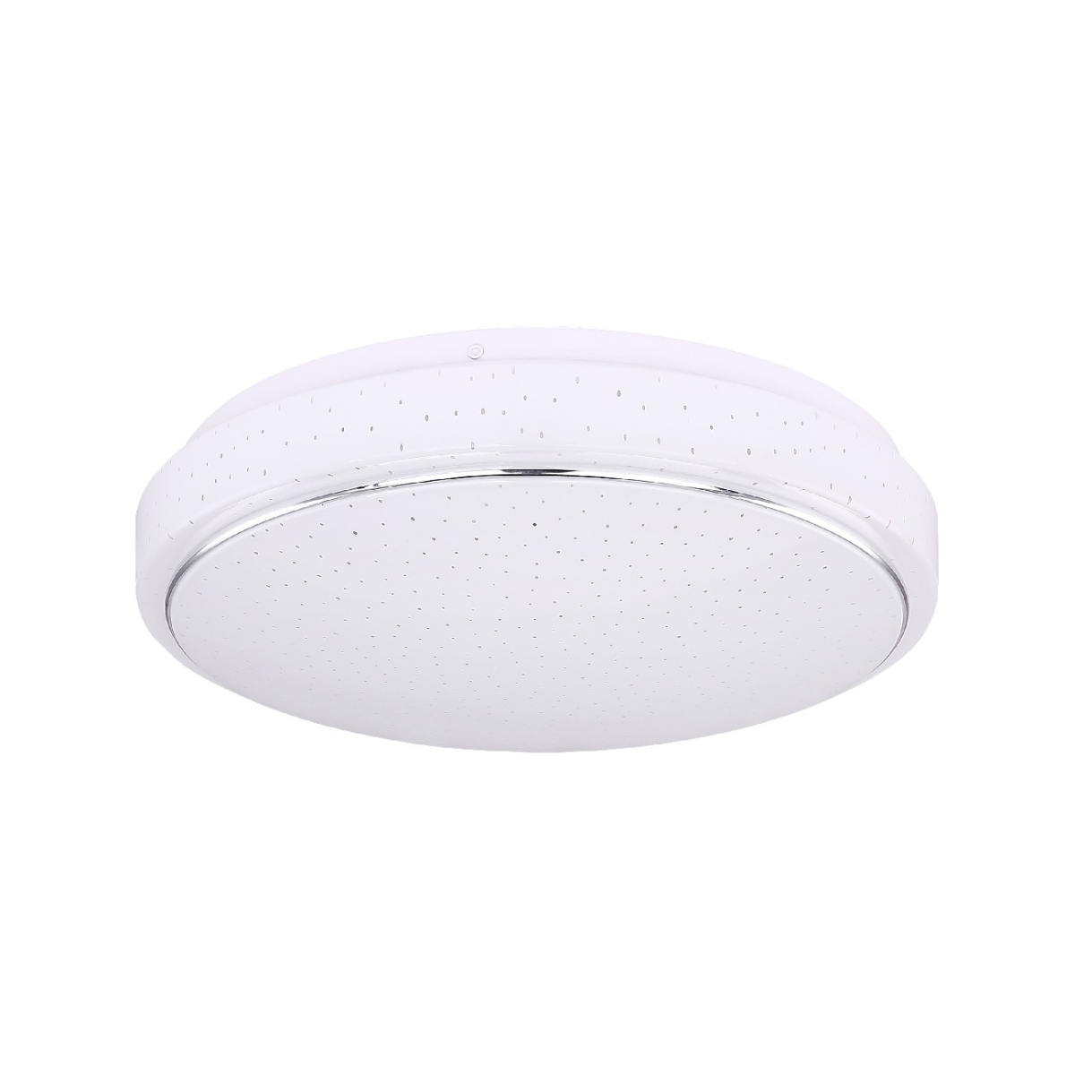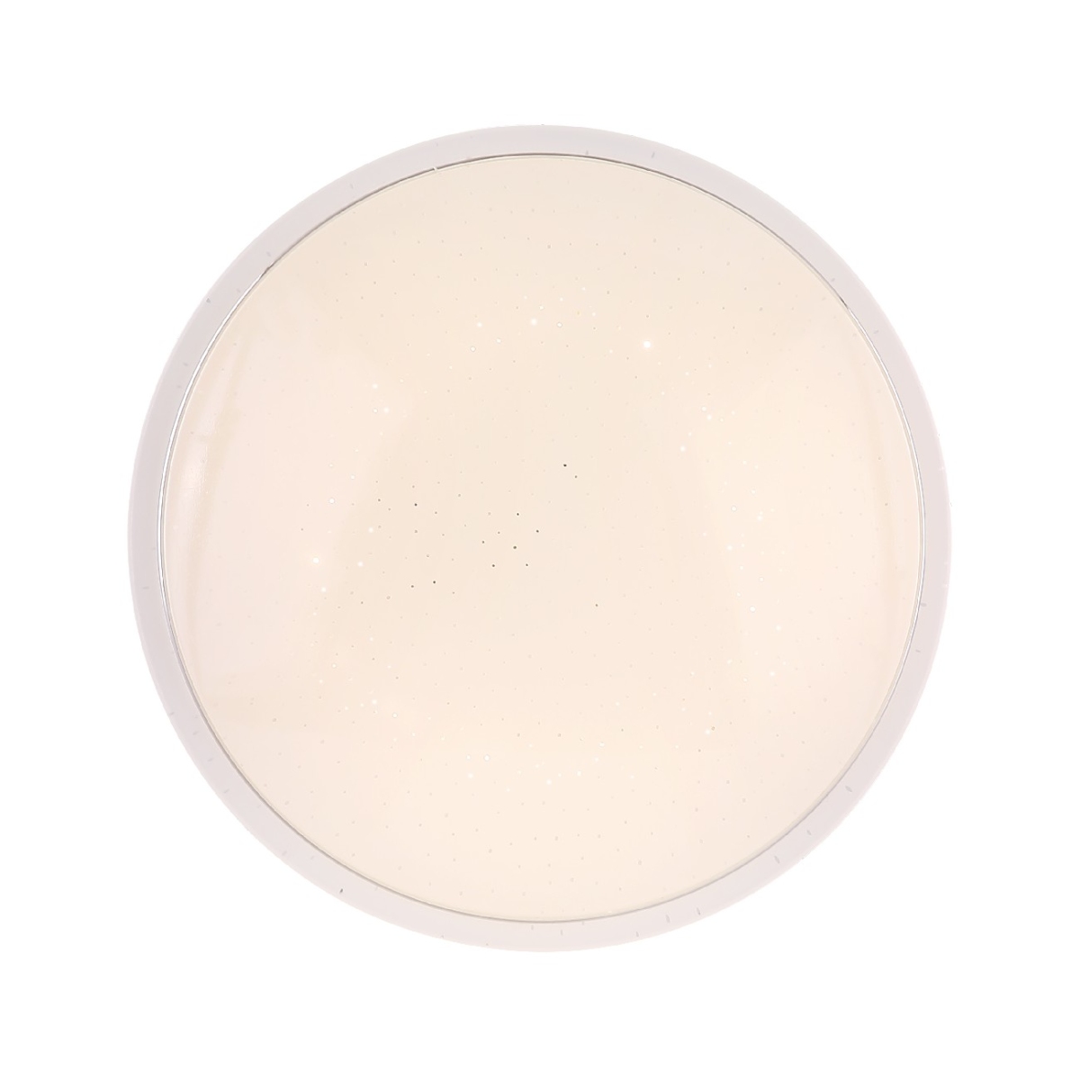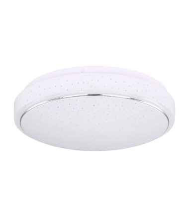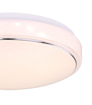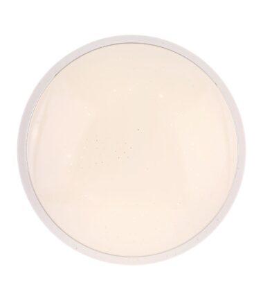 Okrugla (28,5cm) plafonska lampa KALLE ističe se svojim izgledom. Napravljena od belog metala i opalne plastike sa svetlucavim izgledom, ova plafonska lampa ima uključenu 18 vati LED sijalicu. Lampa ukrašena hromiranim prstenovima obezbeđuje 1300 lumena svetlosti i može se univerzalno koristiti u vašem životnom prostoru.