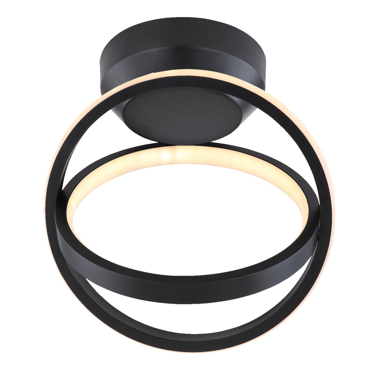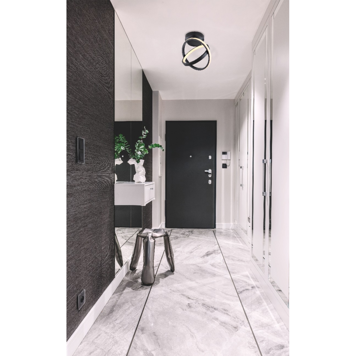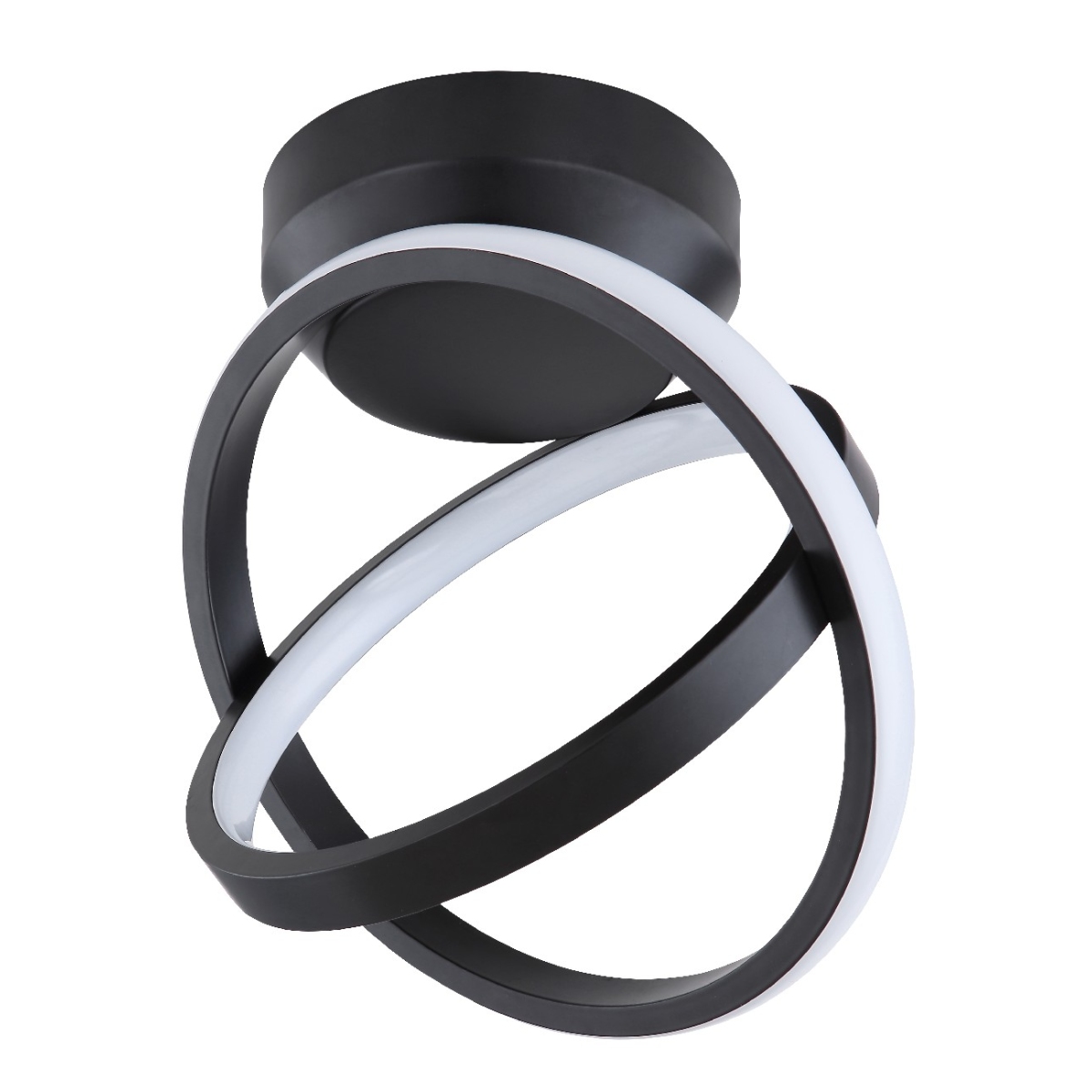 Ova moderna plafonska lampa serije KAMILLA (ø 25 cm) je divan dodatak vašem enterijeru. Sastoji se od dva crno-mat metalna prstena, koji su raspoređeni ukršteno, pri čemu je manji unutar većeg prstena. Veći prsten je obezbeđen spolja, manji iznutra, sa opalnom plastikom, koja pokriva uključene LED diode. Uz njih, plafonska lampa od 28 cm obezbeđuje 900 lumena jako svetlo prijatne lagane boje od 3000 Kelvina (topla bela). Sa ostalim modelima iste serije možete upotpuniti celokupnu sliku u svom enterijeru i stvoriti elegantan ambijent.