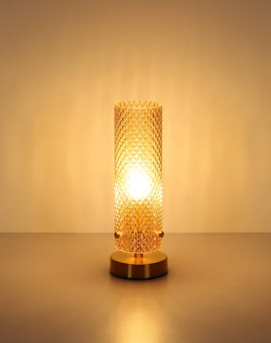 KAROLO stona lampa – stilsko osvetljenje za svaki dom Stona lampa KAROLO impresionira svojim elegantnim dizajnom i stvara toplu, prijatnu atmosferu. Cilindrični stakleni abažur sa strukturom saća pruža fascinantne refleksije svetlosti, dok metalno kućište zlatne boje daje lampi elegantan izgled. Ćilibarni stakleni abažur širi prijatno, toplo svetlo koje je idealno za bočne stočiće, noćne stočiće ili kao dekorativno akcentno osvetljenje. Sa prečnikom od 100 mm, lampa je kompaktna i harmonično se uklapa u širok spektar stilova nameštaja. Prekidač na kablu omogućava lako rukovanje. E14 grlo (nije uključeno) nudi fleksibilnost pri izboru sijalice. Stona lampa KAROLO je savršen izbor za svakoga ko traži stilsko i funkcionalno rešenje za osvetljenje koje kombinuje moderni šik sa prijatnom svetlošću.