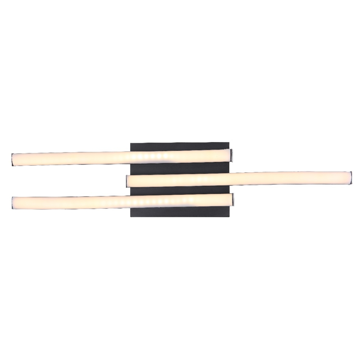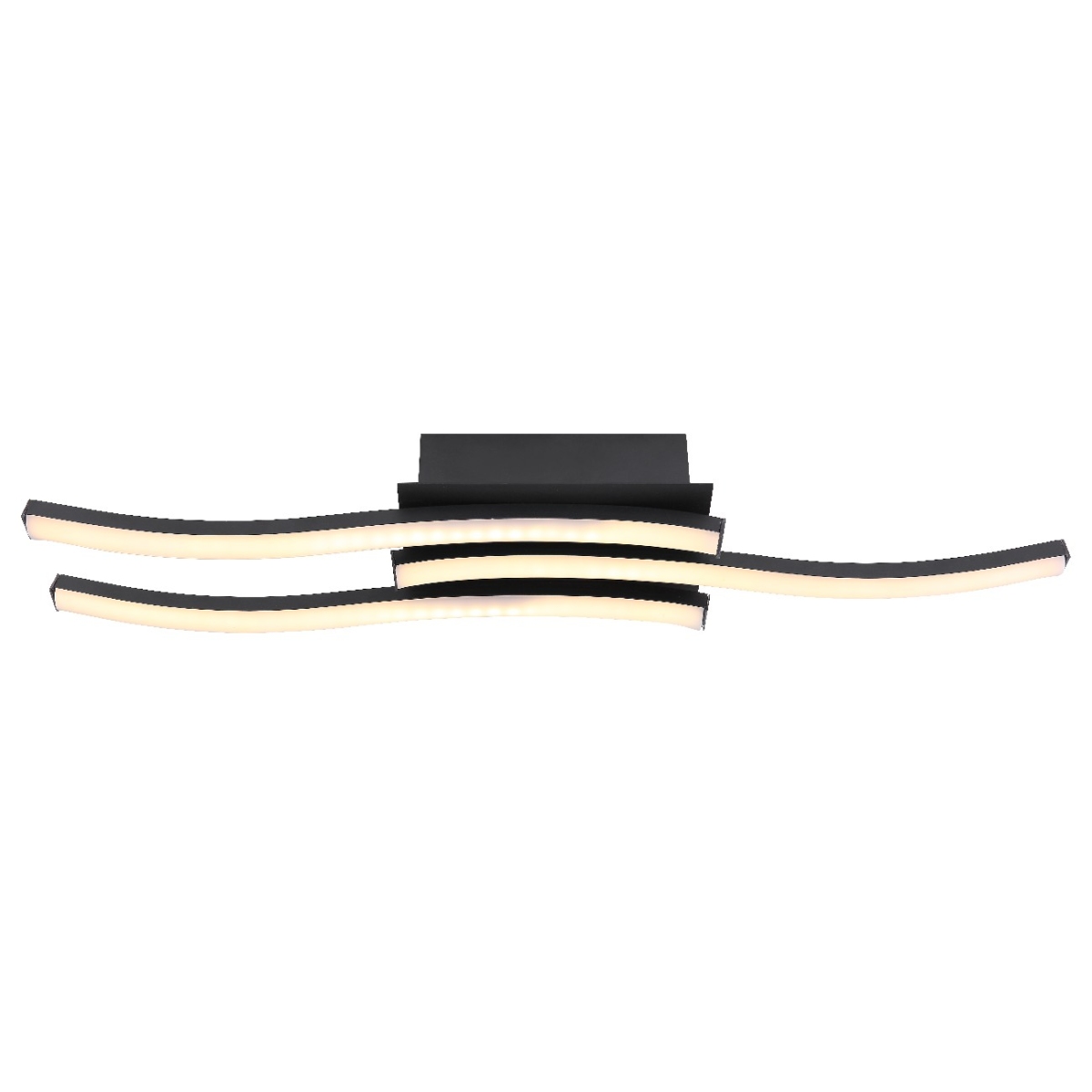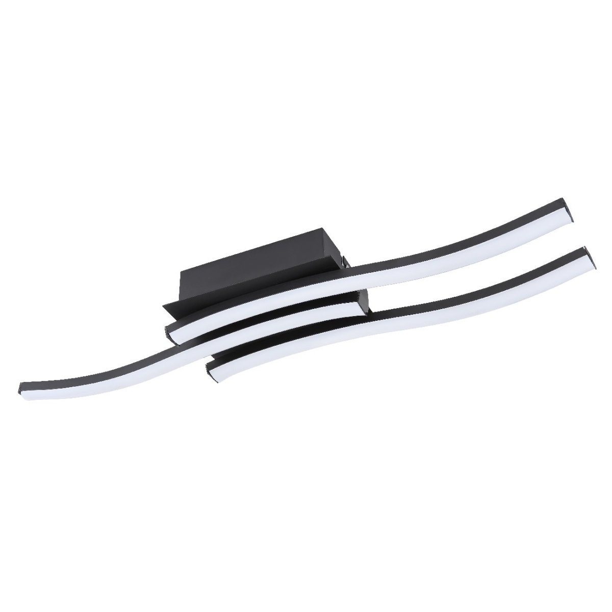 Ova moderna plafonska lampa iz serije KASIMIR (54×16 cm) impresionira svojim jednostavnim dizajnom napravljenim od crnog mat metala i opalne plastike. Sastoji se od tri paralelne i diskretno zakrivljene metalne grane, pri čemu dve vire na jednu stranu a jedna na drugu. Osim toga, opremljena je opal plastikom, koja prekriva uključene LED sijalice, sa kojima plafonska lampa pruža 1050 lumena jako svetlo prijatnom svetlom bojom od 3000 Kelvina (topla bela). Sa ostalim modelima iste serije možete upotpuniti celokupnu sliku u svoja četiri zida.