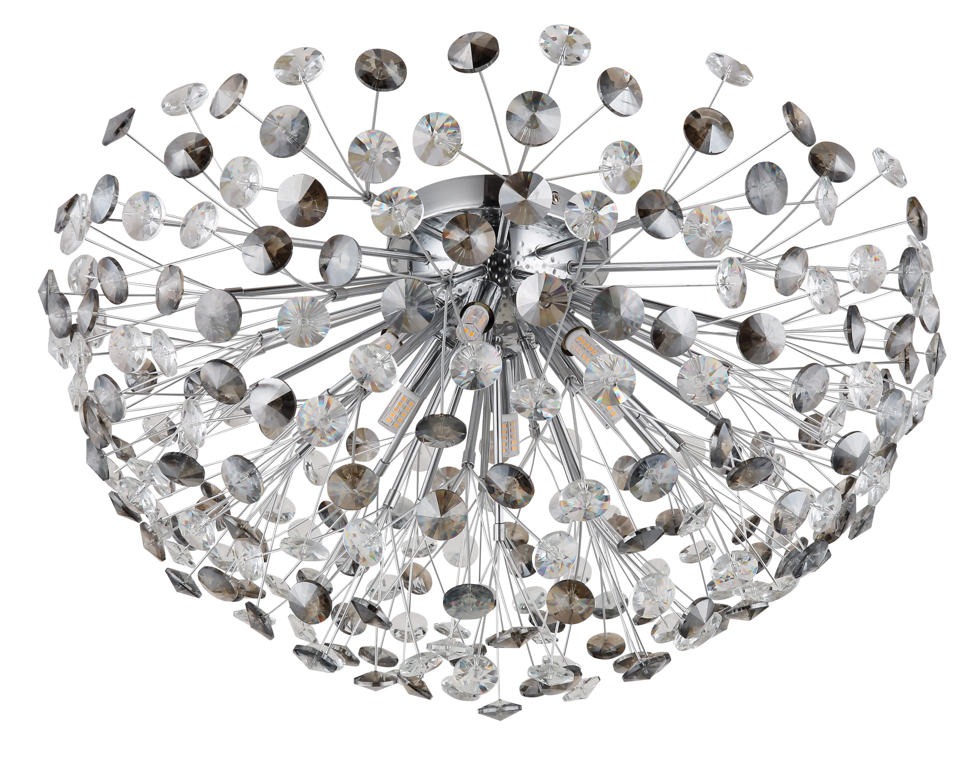 Plafonska lampa „KATRINA“ kombinuje klasičan dizajn sa modernom elegancijom. Njen okrugli, hemisferični abažur napravljen od dimljenih i providnih K9 kristala ne samo da nudi impresivno prelamanje svetlosti, već i stilski eksterijer. Telo od hromiranog metala ističe visokokvalitetnu izradu i daje lampi plemeniti sjaj. Opremljena sa 6XG9 LED sijalica, plafonska lampa emituje toplo belo svetlo sa temperaturom boje od 3000K i proizvodi snaga od 350 lumena. Ova kombinacija kvaliteta svetlosti i dizajna čini je idealnom za upotrebu u dnevnim sobama, hodnicima ili spavaćim sobama, gde ne služi samo kao izvor svetlosti, već deluje i kao dekorativni element. „KATRINA“ je savršen izbor za one koji cene klasičnu estetiku sa modernom tehnologijom i visokokvalitetnim materijalima.