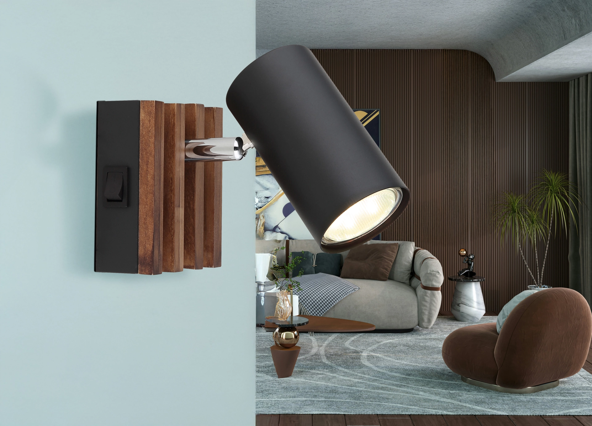 Zidna lampa KAYDEN impresionira svojim modernim dizajnom i funkcionalnim detaljima. Pravougaona zidna tabla sa elegantnom drvenom aplikacijom u tamnosmeđoj boji harmonično se uklapa u svaki ambijent i postavlja stilski akcenat na zid. Cilindrični reflektori napravljeni od crnog, mat metala nude precizno usmeravanje svetlosti i omogućavaju ciljano osvetljenje. Metalno kućište u crnom mat izgledu i drvo u tamnosmeđoj boji obezbeđuju uspešnu kombinaciju modernih i prirodnih elemenata. Svetlom se može lako upravljati pomoću praktičnog prekidača na predmetu. Sa svojim kompaktnim dimenzijama od 80 mm širine i 125 mm visine, reflektor KAYDEN je idealan za manje zidove i pruža ciljano akcentovanje osvetljenja. Lampa je opremljena GU10 grlom (bez sijalice), što omogućava individualni izbor sijalice.