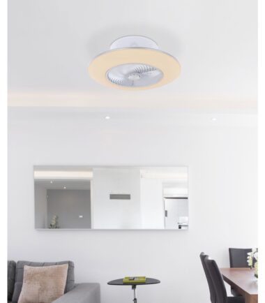 Ovaj okrugli plafonski ventilator (ø 58 cm) je divan za vaš dnevni boravak. Ne samo da obezbeđuje hlađenje, već obezbeđuje i 1900 lumena jake svetlosti. Pored toga, ventilator na plafonu je zatamnjiv, što vam omogućava da pojedinačno podesite boju svetla između tople bele (3000 Kelvin) i hladno bele (6000 Kelvin).
