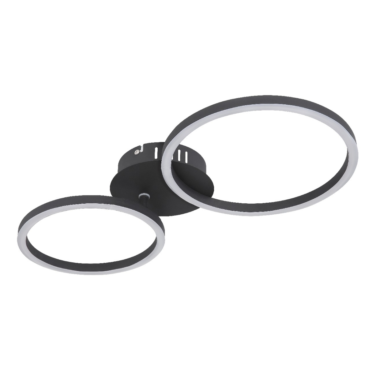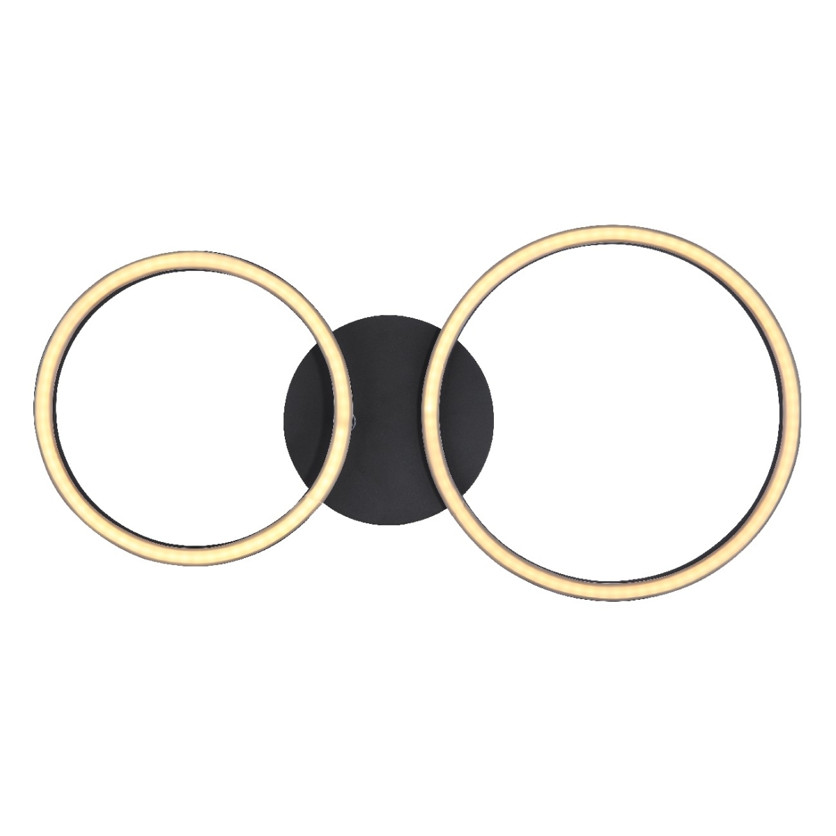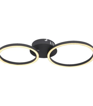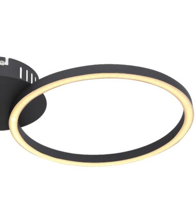 Plafonska lampa u mat crnoj boji privlačiće poglede. Dva svetlosna prstena različite veličine (Ø 25cm i Ø 20,5cm), napravljena od opalne plastike, obezbeđuju 900 lumena jako uzbudljivo svetlo sa prijatnom toplom belom svetlom od 3000K.