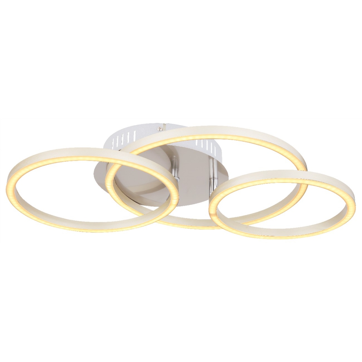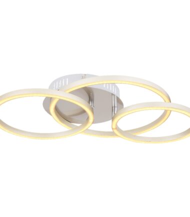 Nikl mat LED plafonska lampa (Ø prstenja: 30cm, 25cm i 20,5cm) privlači svačiju pažnju svojim modernim, impozantnim dizajnom. Njegov zakrivljeni oblik stvara pravi detalj koji će privlačiti pažnju. Moderna plafonska lampa je snabdevena sa tri trajno postavljene LED sijalice. Zahvaljujući LED tehnologiji koja se koristi, lampa izuzetno štedi energiju i ističe se se sa niskom proizvodnjom toplote i dugim radnim vekom.