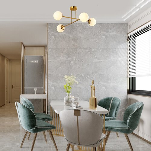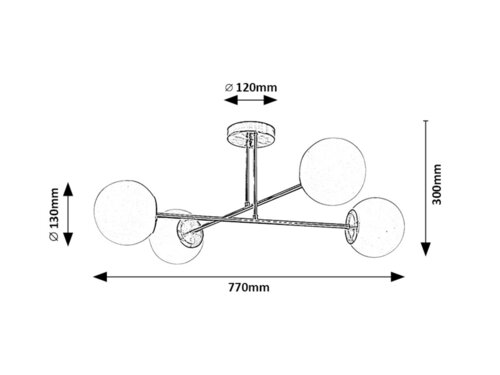 Sa svojim svežim i elegantnim izgledom, moderna Kiara plafonska lampa sa 4 sijalice je odličan izbor za dnevnu ili spavaću sobu. Metalni uređaj zlatne boje upotpunjen je belim staklenim abažurima. Lampa se može pričvrstiti na plafon uz pomoć malog, okruglog ukrasnog postolja. Sferne glave sijalica postavljene su na krajevima horizontalnih potpornih šipki koje su pričvršćene za dekorativnu osnovu. Kiara se može koristiti sa četiri G45 sijalice, svaka snage do 35 V. Tip grla je E27. U zavisnosti od vaših preferencija i prostorije u koju želite da postavite lampu, možete odabrati sijalice koje zrače toplo ili prirodno belo svetlo. Ako ga postavite u spavaću sobu, dobra je ideja da ga koristite sa sijalicama koje emituju toplu belu svetlost jer ova vrsta svetla stvara prijatnu, intimnu atmosferu, opušta oči i pomaže vam da se opustite. Širina plafonske lampe Kiara je 770 mm, rastojanje od plafona 300 mm, prečnik svakog abažura 130 mm, prečnik ugradnje lampe 120 mm. Ovaj model se isporučuje bez izvora svetlosti.