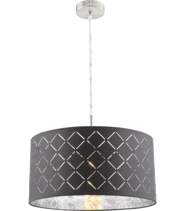 Uz ovu izuzetno modernu visilicu u tamno sivoj boji, iz serije KIDAL, postavljeni su svetleći akcenti. Svestran, ovaj model, sa svojim ukrasnim detaljima i srebrno-metalik abažurom unutar prekriven tekstilom, može da doprinese udobnom okruženju. Ova visilica ima E27 grlo, koja vam omogućava da slobodno odaberete sijalicu (max.60W). Ova lampa ima prečnik od 40 cm, što omogućava da se integriše u mnoge životne prostore. Preporučujemo LED sijalice, zbog njihove uštede energije i dugovečnosti.