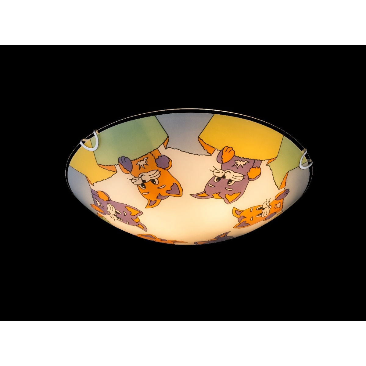 Okrugla (Ø30 cm) plafonska lampa KIDDY je vrhunac u svakoj dečijoj sobi. Ova dečija lampa sa staklom ukrašena šarenim dečijim motivima, sa dva E27 grla, daje vam mogućnost da sami odredite intenzitet svetlosti. Zbog uštede energije i trajnosti preporučujemo LED sijalice. Međutim, odabrana sijalica treba da bude u obliku kapljice.