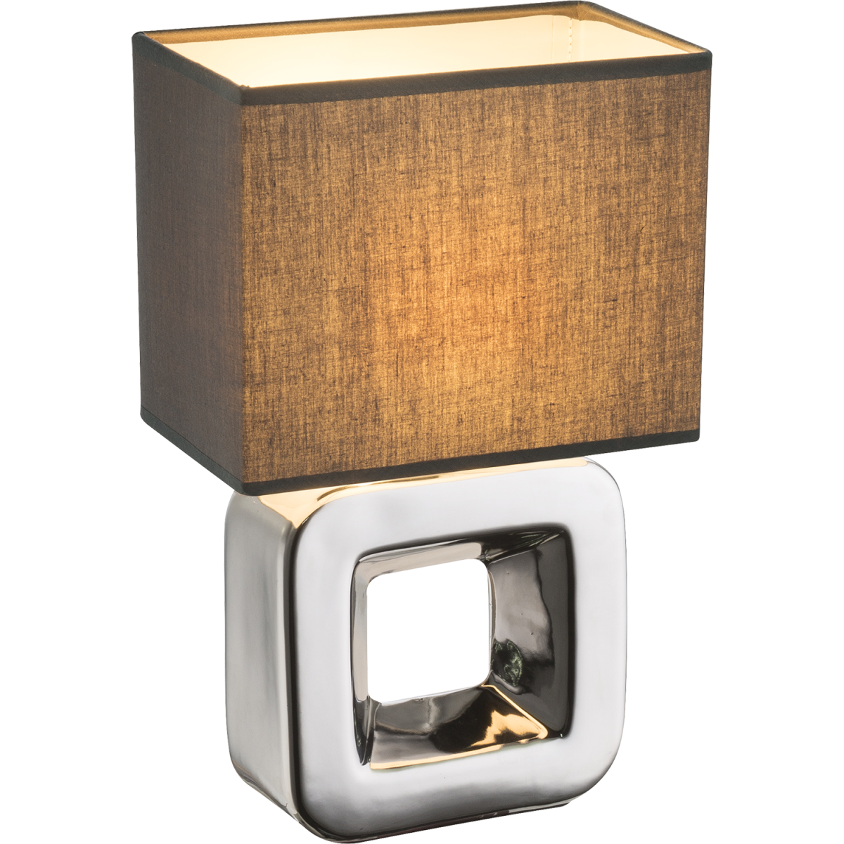 Ukrasna četvrtasta stona lampa KILAUEA ulepšava bilo koju prostoriju. Podloga je hromirana keramika i sivi tekstil upotpunjuje sliku ove lampe. Sa veličinom od 20×20 cm, može se idealno integrisati u vaš dnevni boravak. Opremljena prekidačem za isključivanje i E14 grlom (max. 40W), ovaj model vam omogućava da odaberete bilo koju sijalicu. Preporučujemo LED sijalice zbog njihove trajnosti i uštede energije.