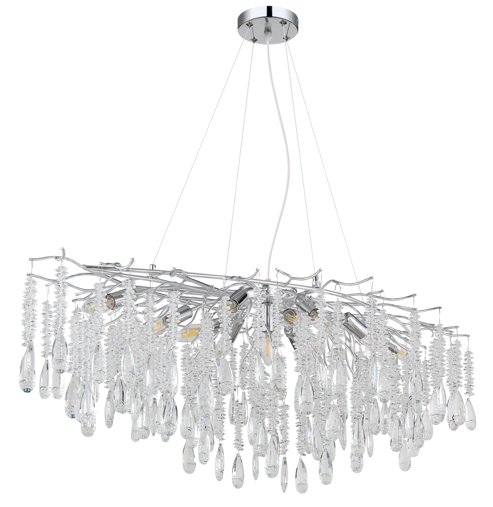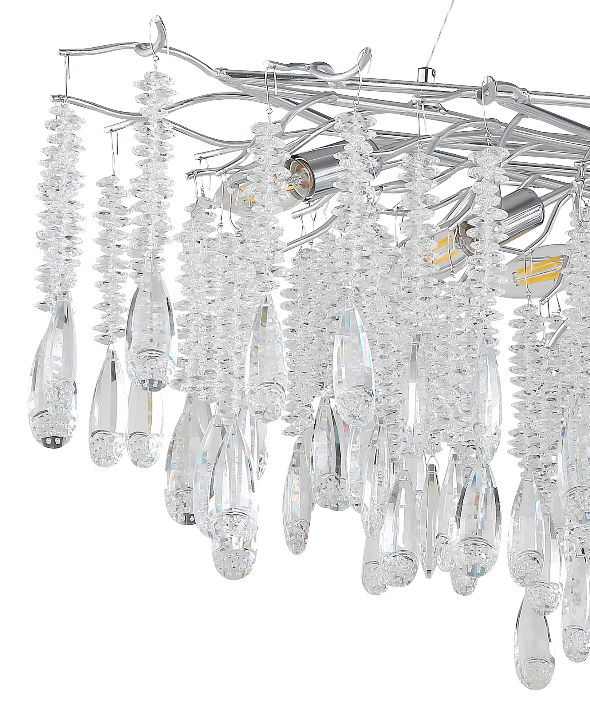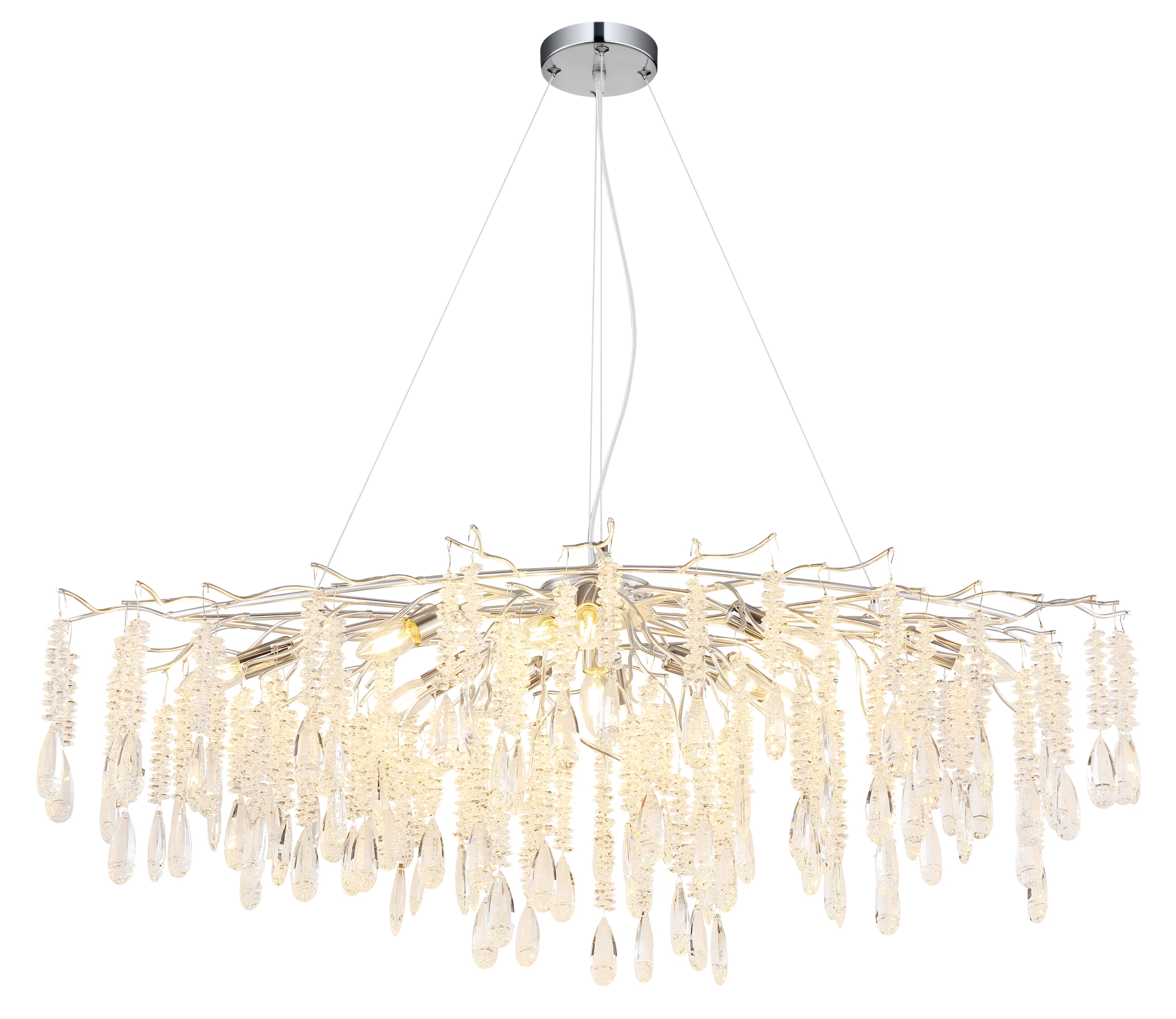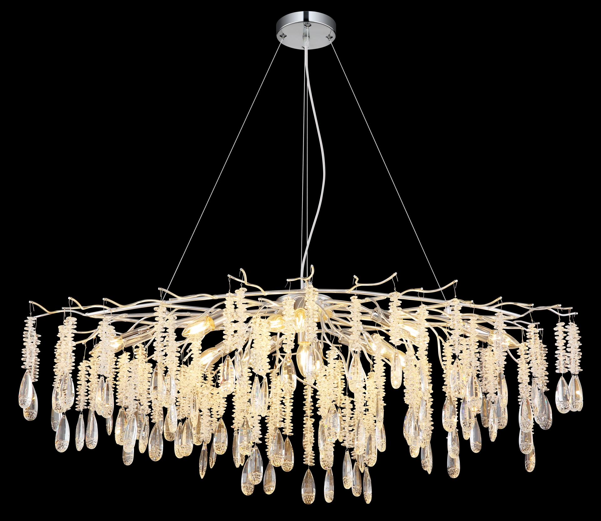 Ovalni luster KINGA impresionira svojim modernim dizajnom i visokokvalitetnim materijalima. Mat srebrni metalni okvir formira delikatnu strukturu koja elegantno podržava ovalni abažur. Abažur je ukrašen kristalima od providnog stakla koji prelepo prelamaju svetlost, stvarajući blistav i elegantan ambijent. Sa dužinom od 1200 mm i širinom od 500 mm, KINGA je savršen za prostrane dnevne sobe, reprezentativne ulaze ili stilske trpezarije. Svetiljka zahteva grlo E14 (nije uključeno), što vam omogućava da izaberete željeni izvor svetlosti. KINGA kombinuje savremeni dizajn sa klasičnim kristalnim stilom i pruža harmoničnu raspodelu svetlosti koja stilski osvetljava svaku prostoriju. Bilo da je upečatljiv centralni ukras ili suptilni dragulj, ovaj luster unosi luksuz i sjaj u vaš dom. Idealan je za ljubitelje estetskog osvetljenja sa čistim linijama i plemenitim izgledom.