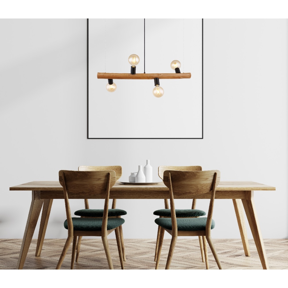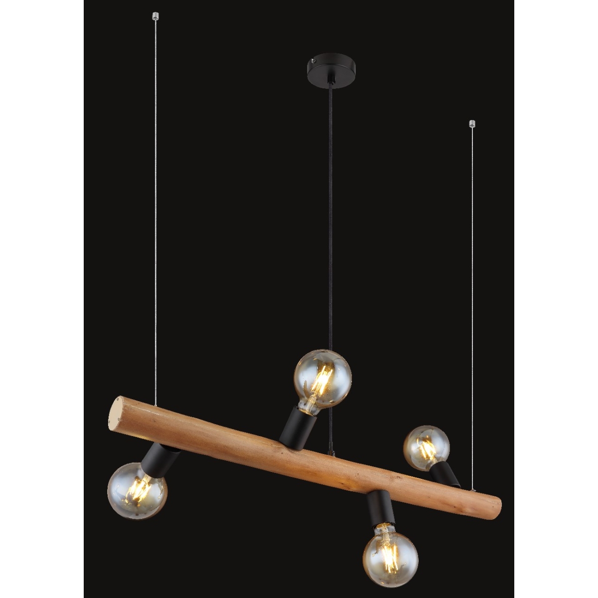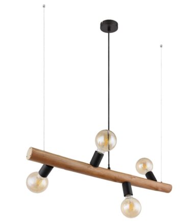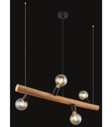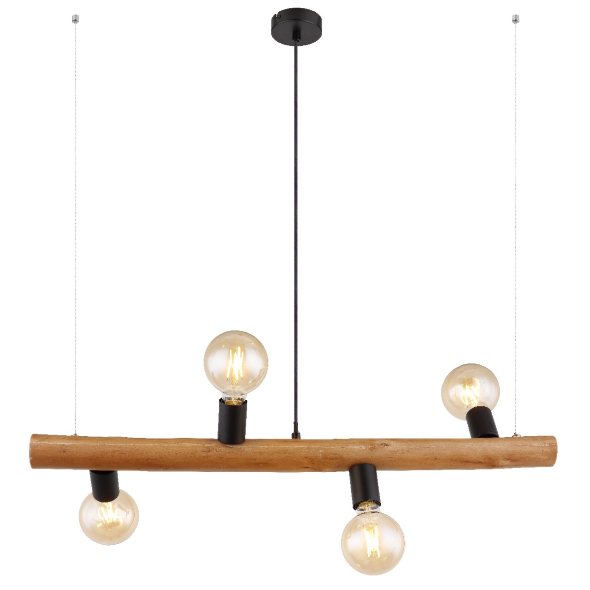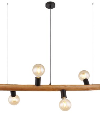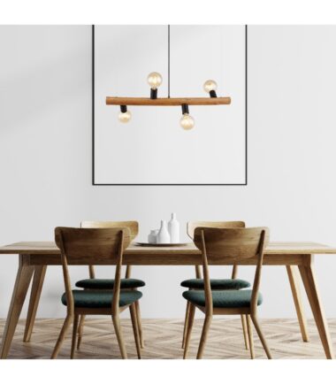 Ova visilica iz serije KIRA upotpunjuje vaš enterijer elegantnim izvorom svetlosti. Visilica dugačaka 80 cm sastoji se od tamno braon drvene šipke suspendovane sa plafona na kablu i dva metalna kabla i opremljena sa četiri E27 grla koja su drugačije orijentisani. One mogu biti opremljene odgovarajućim sijalicama po vašem izboru, što vam pruža mogućnost da pojedinačno odredite boju svetla i jačinu. Visina lampe može da se podesi i do 150 cm tokom instalacije. Sa ostalim modelima iste serije možete upotpuniti celokupnu sliku u svoja četiri zida.