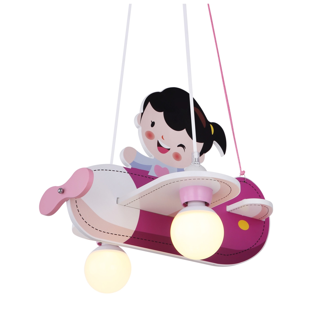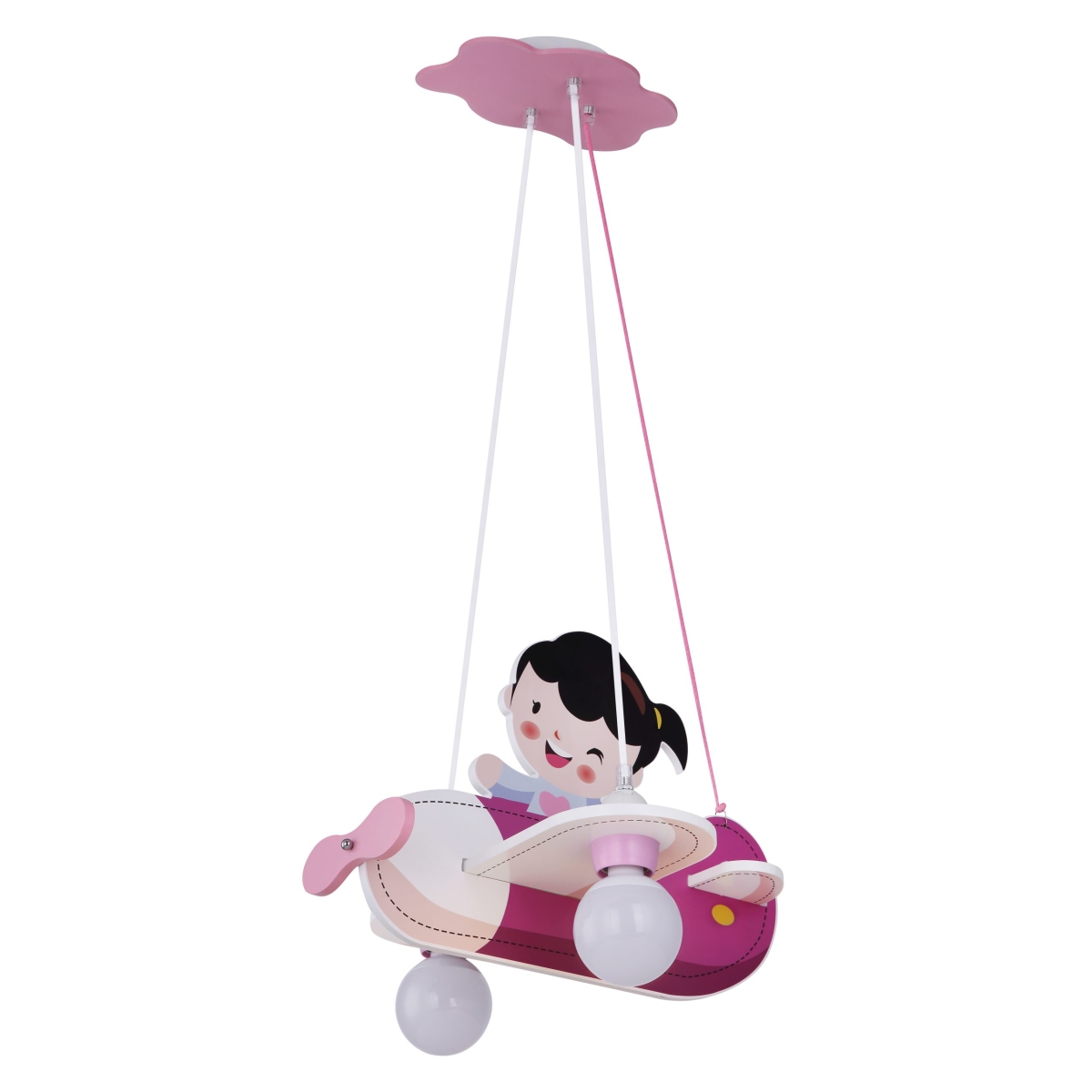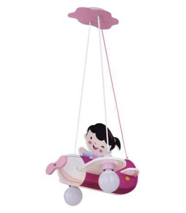 Veoma neobična visilica iz serije KITA, dolazi u obliku aviona. U ovom ružičastom avionu sedi devojčica. Čini se da je više igračka nego lampa i zato je prava za sobu malog pilota. Sa visinom od 1,2 metra i dužinom od 43 centimetra, savršeno se uklapa u dečiju sobu. Zbog slobodnog izbora izvora svetlosti (E27/max. 40W), možete sami odrediti intenzitet svetlosti i laganu boju ove unutrašnje lampe. Zbog njihove dugovečnosti preporučujemo LED sijalice.