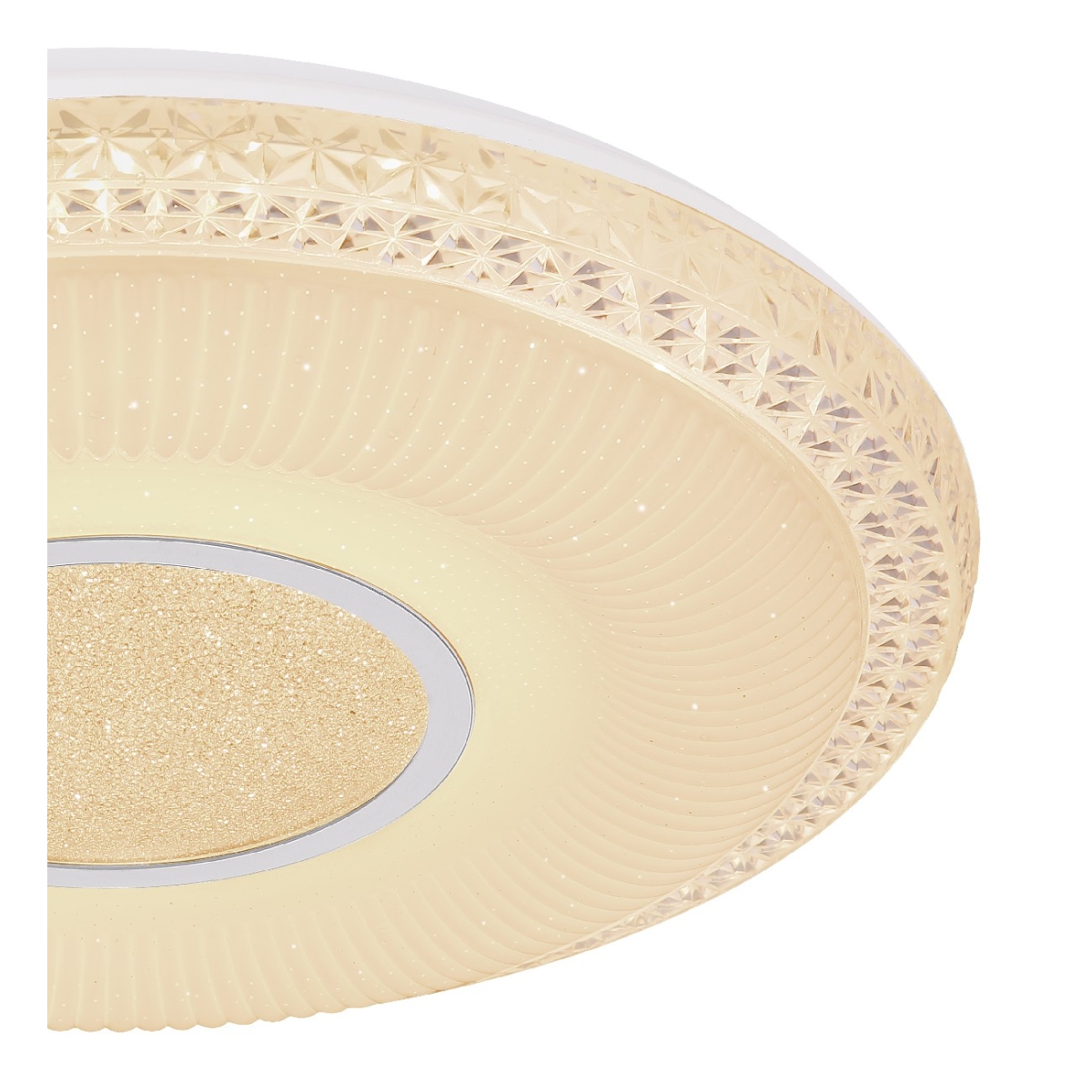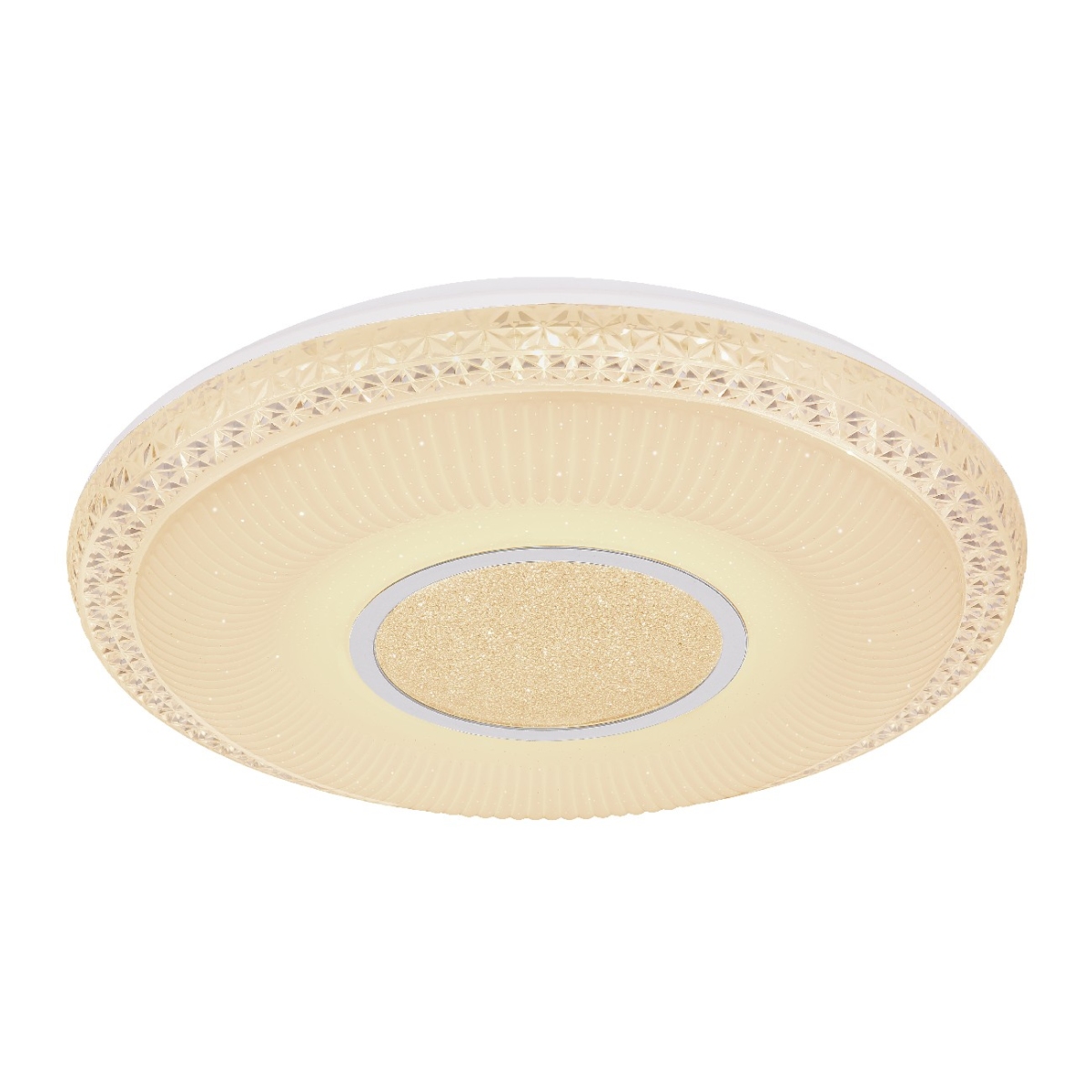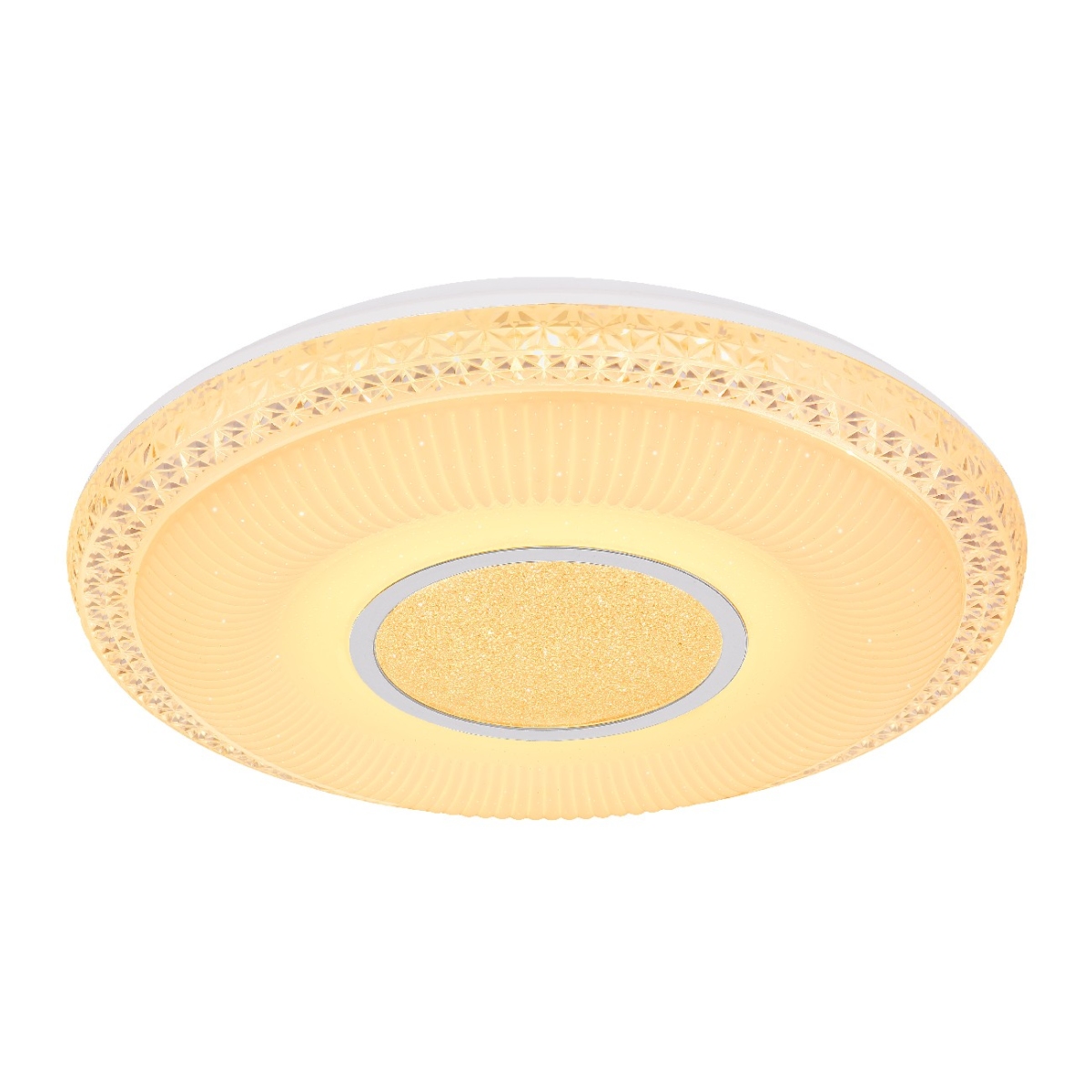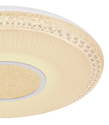 Plafonska lampa KLEMENS impresionira svojom lepotom i funkcionalnošću. Okrugla, unutrašnja lampa sa opalnim akrilnim staklom očarava vaš životni prostor svetlucavim dekor elementima. Obrađeni hromirani prsten doprinosi prelepom dizajnu ove lampe. Pomoću uključenog daljinskog upravljača boja ove lampe se može promeniti ili fiksirati. Zahvaljujući integrisanoj LED sijalici od 40W, ova plafonska lampa obezbeđuje do 2140 lumena jako svetlo. Boju možete prilagoditi od toplo bele 3000 Kelvina do hladno bele 6000 Kelvina. Uključena RGB sijalica omogućava vašoj sobi da sija u različitim bojama. Pored toga, ova lampa ima noćno svetlo ili funkciju memorije. Ova prelepa lampa je pogodna za spavaće sobe, dečije, hodnike i dnevne sobe.