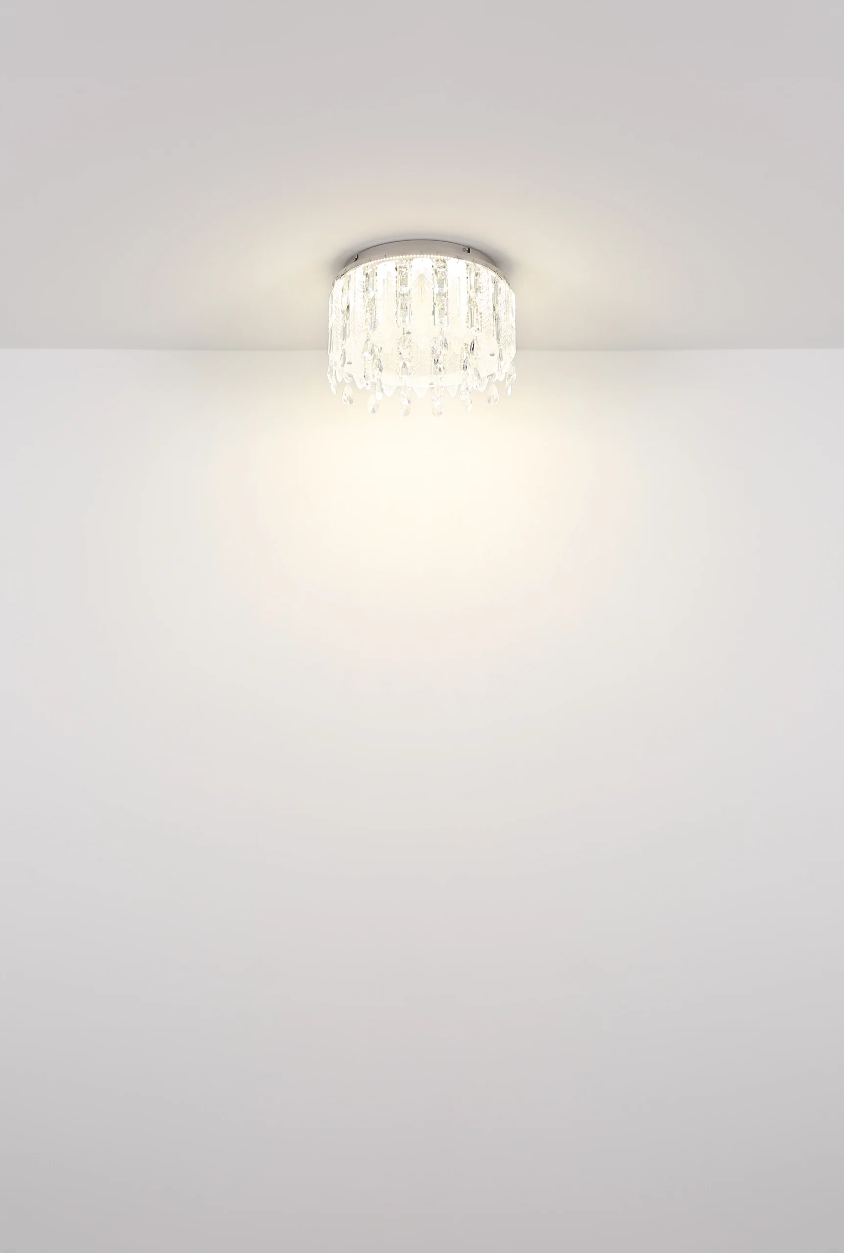 Luksuzna okrugla plafonska lampa KLUNKA postavlja elegantne akcente u svakoj prostoriji. Hromirano metalno kućište i impresivni K5 kristal koji visi u providnoj završnoj obradi daju ovoj plafonskoj lampi glamurozan izgled. Sa velikodušnim prečnikom od 600 mm i snagom od 58 W, ova plafonska lampa proizvodi snažan svetlosni fluks od 3770 lumena, pružajući svetlo i privlačno osvetljenje. Zahvaljujući priloženom daljinskom upravljaču, KLUNKA je prigušljiva i omogućava vam da podesite temperaturu boje od 2700K do 6000K. Funkcija memorije čuva poslednja korišćena podešavanja, dok funkcija noćnog svetla pruža meko osvetljenje u mraku. Unesite stil i udobnost u svoj dom pomoću ove izvrsne plafonske lampe i doživite prilagodljivo osvetljenje.