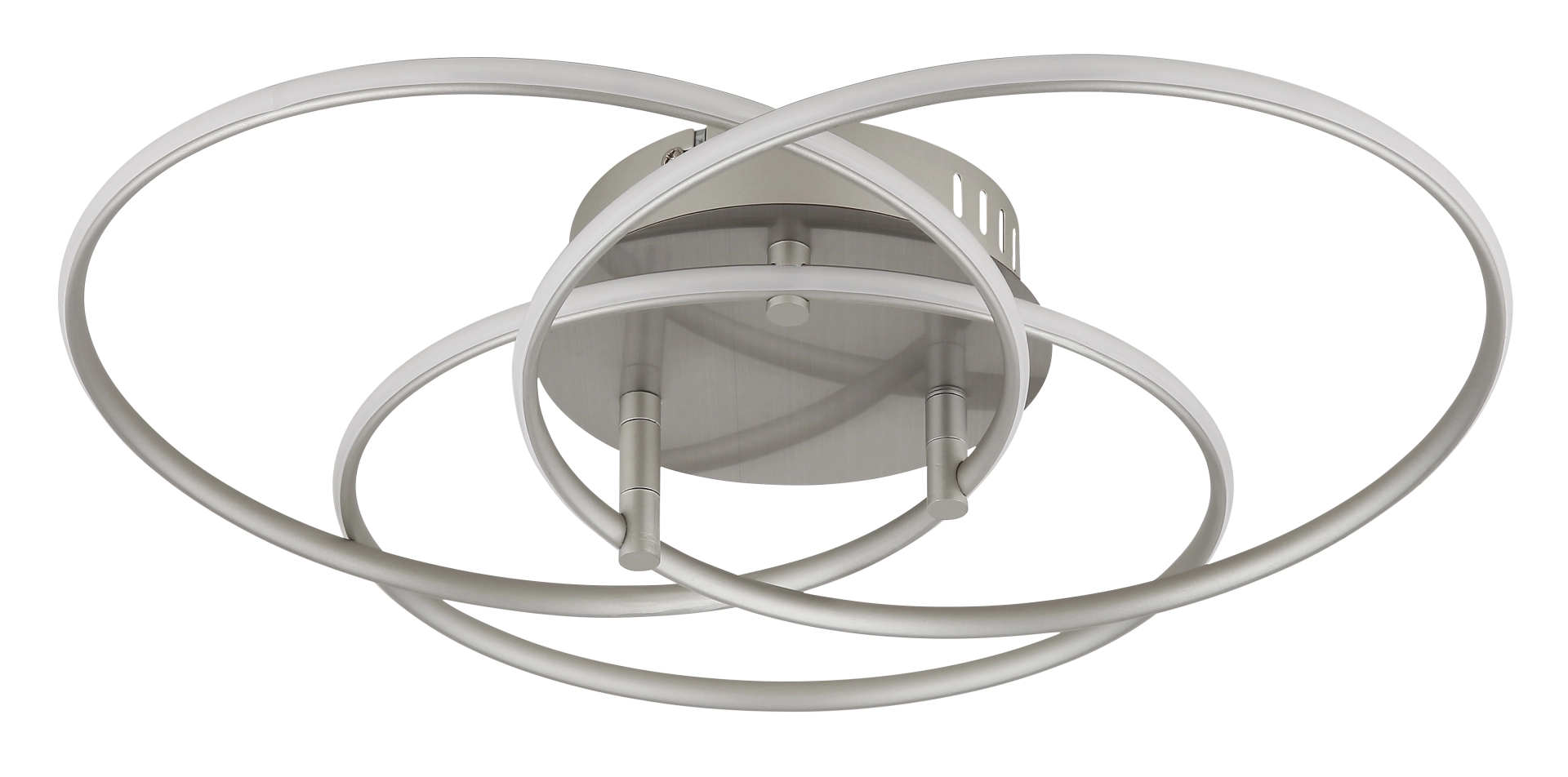 Plafonska lampa KOMBOS impresionira svojim modernim dizajnom i impresivnim svetlosnim izlazom. Sastoji se od tri prstena koji su raspoređeni jedan iznad drugog i formiraju skladan, okrugli oblik. Telo napravljeno od mat nikl metala i abažur od aluminijuma u mat niklu i opal plastike obezbeđuju elegantan i moderan izgled. Sa prečnikom od 456 mm, lampa se savršeno uklapa u različite veličine prostorija. Lumenski izlaz od 3520 lumena pruža svetlo, ravnomerno osvetljenje i idealan je za dnevne sobe, hodnike ili kancelarije. Temperatura boje od 4000K stvara neutralno, udobno svetlo koje je pogodno i za opušteno i za produktivno okruženje. Plafonska lampa KOMBOS sa integrisanom LED tehnologijom je savršen izbor za svakoga ko želi da kombinuje funkcionalno svetlo sa modernim dizajnom.
