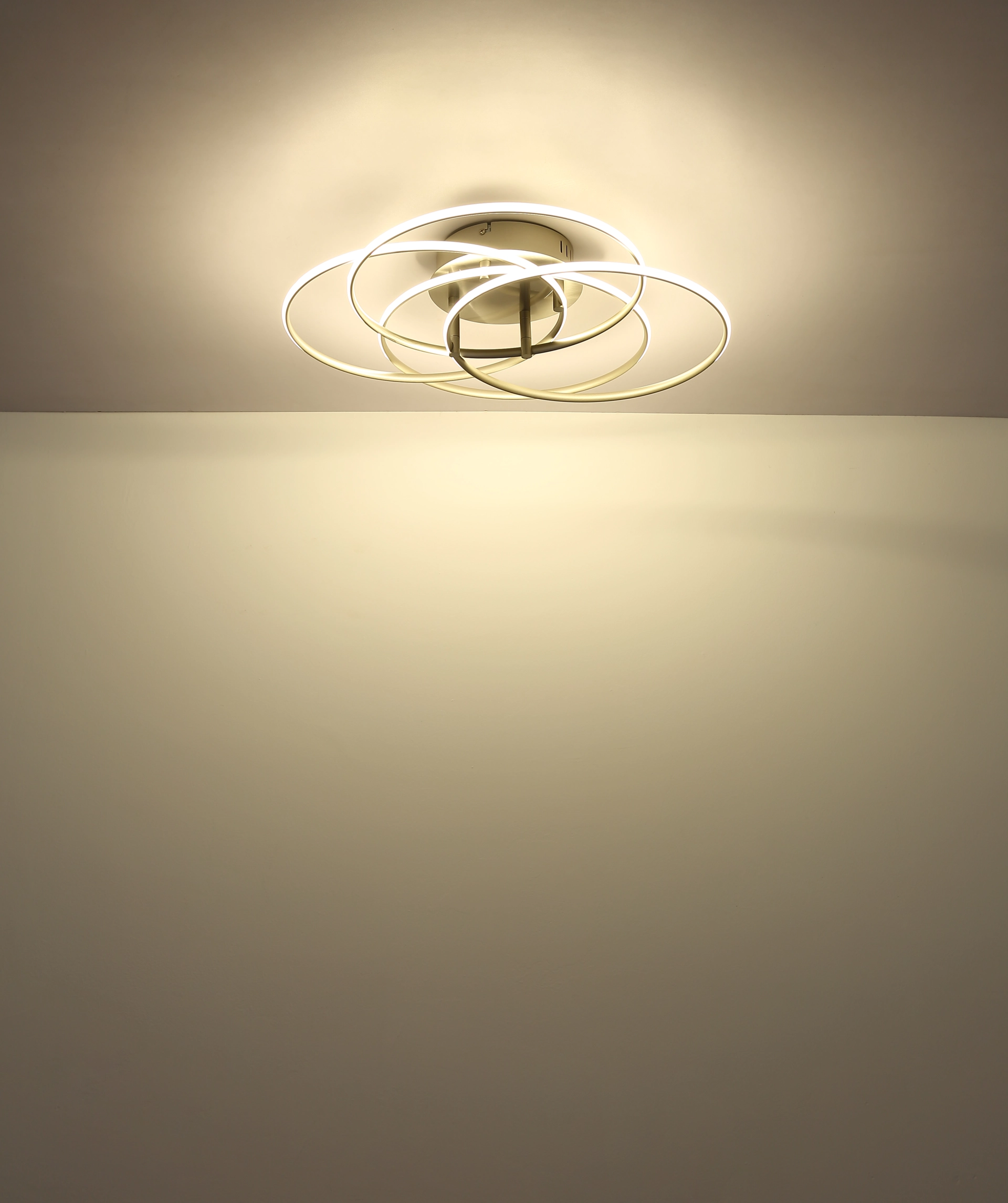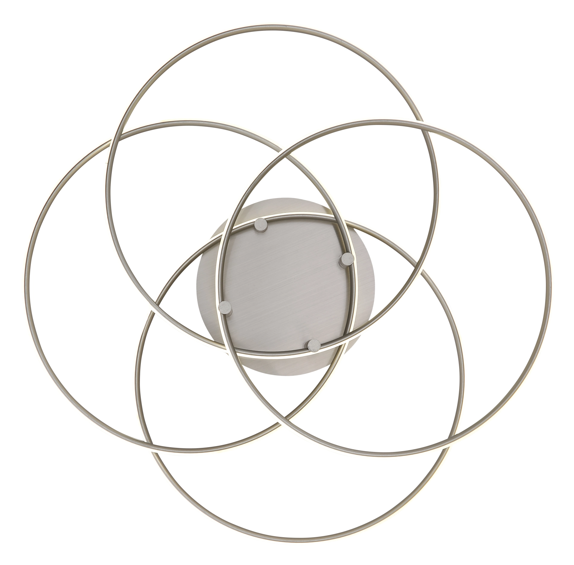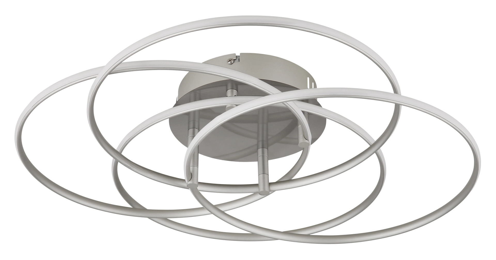 Plafonska lampa KOMBOS impresionira svojim modernim dizajnom sa četiri prstena raspoređena jedan iznad drugog u okruglom obliku. Telo napravljeno od mat nikl metala i abažur od aluminijuma u niklu i opal plastiku daju lampi elegantan i moderan izgled. Sa prečnikom od 515 mm, lampa je idealna za veće prostorije kao što su dnevne sobe, trpezarije ili hodnici. Impresivni lumenski snaga od 4650 lumena obezbeđuje svetlo i ravnomerno osvetljenje prostorije. Sa temperaturom boje od 4000 K, stvara neutralno i prijatno svetlo koje je idealno i za opuštene večeri i za produktivne radne periode. Zahvaljujući integrisanoj LED tehnologiji, plafonska lampa KOMBOS je posebno energetski efikasna i izdržljiva. Stilan izbor za svakoga ko ceni moderno osvetljenje i visoku funkcionalnost.