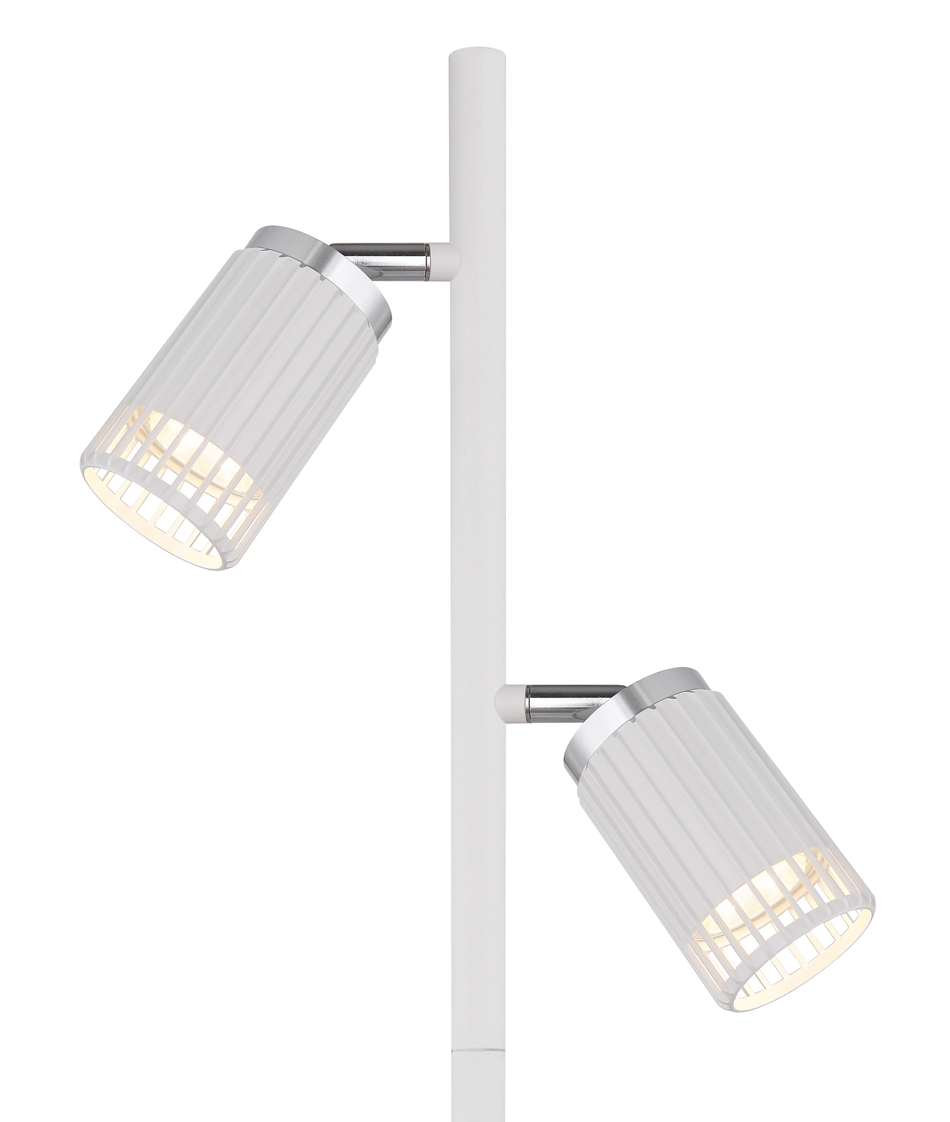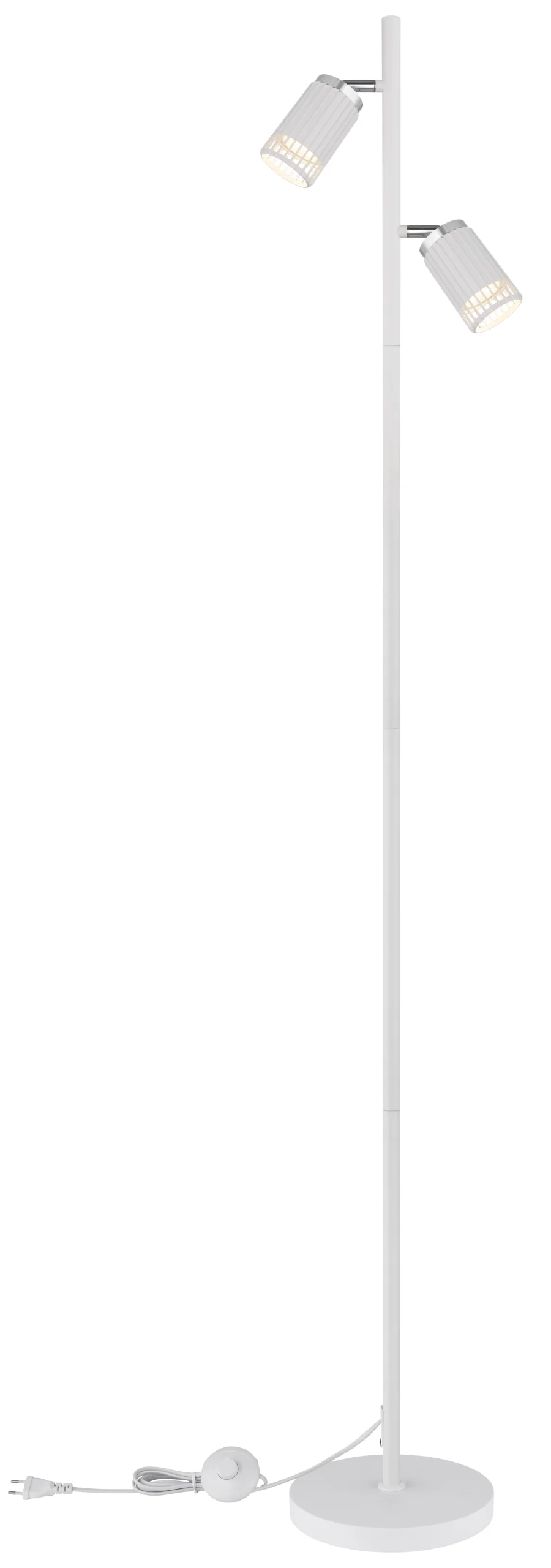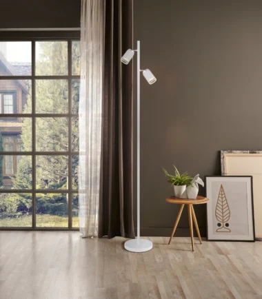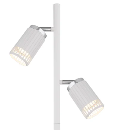 Kombinujući moderan dizajn sa funkcionalnim osvetljenjem, podna lampa KORBEN je stilski dodatak svakoj prostoriji. Sa svoja dva cilindrična abažura postavljena na elegantne šipke i otvorena sa prednje strane, nudi ciljanu, direktnu distribuciju svetlosti. Mat belo metalno kućište se savršeno usklađuje sa mat aluminijumskim abažurima, koji su poboljšani hromiranim akcentima. Sa dužinom od 275 mm i širinom od 220 mm, podna lampa KORBEN je idealna za dnevne sobe, kancelarije ili kutke za čitanje. Opremljena sa dva GU10 LED reflektora, pruža energetski efikasno i prijatno osvetljenje. Praktični nožni prekidač u kablu omogućava lako rukovanje. Minimalistički, okrugli dizajn se bez napora uklapa u moderne stilove enterijera, stvarajući elegantnu atmosferu. PODNA LAMPA KORBEN je savršen izbor za funkcionalno i stilsko rešenje za osvetljenje u vašem domu.