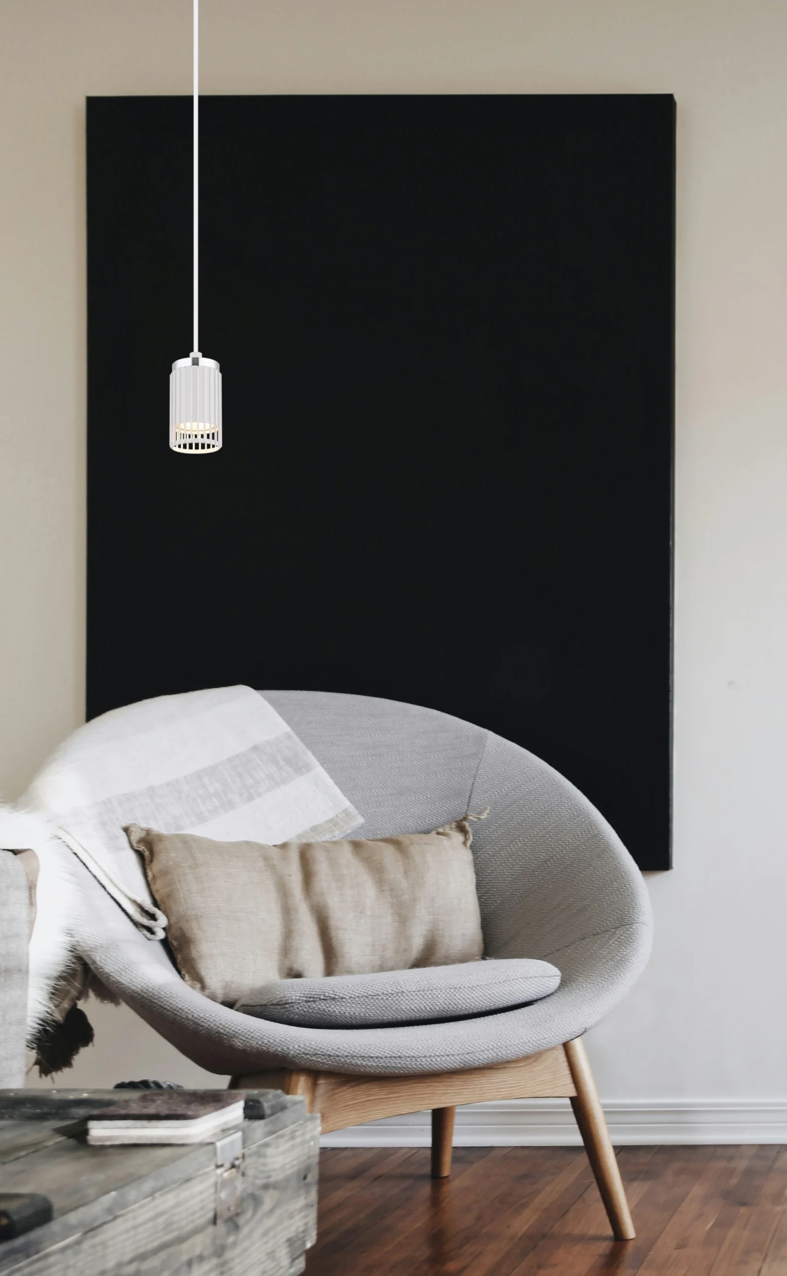 Viseća lampa KORBEN donosi elegantan dizajn i modernu funkcionalnost u vaše sobe. Sa svojim cilindričnim abažurom napravljenim od visokokvalitetnog aluminijuma, koji je u mat beloj i hromiranoj boji, postavlja stilske akcente. Abažur je otvoren napred i drži ga belo, mat metalno kućište, što lampi daje sofisticirani dodir. Sa prečnikom od 100 mm i kompaktnim, okruglim dizajnom, viseća lampa KORBEN se savršeno uklapa iznad malih stolova ili kao dekorativni element u različitim prostorijama. Svetiljka je dizajnirana za 1 GU10 reflektor, koji pruža precizno i prijatno osvetljenje. Kombinacija čiste bele boje aluminijuma i elegantnog metalnog kućišta stvara moderan, atraktivan izgled. Idealna za savremene dnevne i trpezarijske prostore, viseća lampa KORBEN nudi i funkcionalno osvetljenje i estetski dizajn.