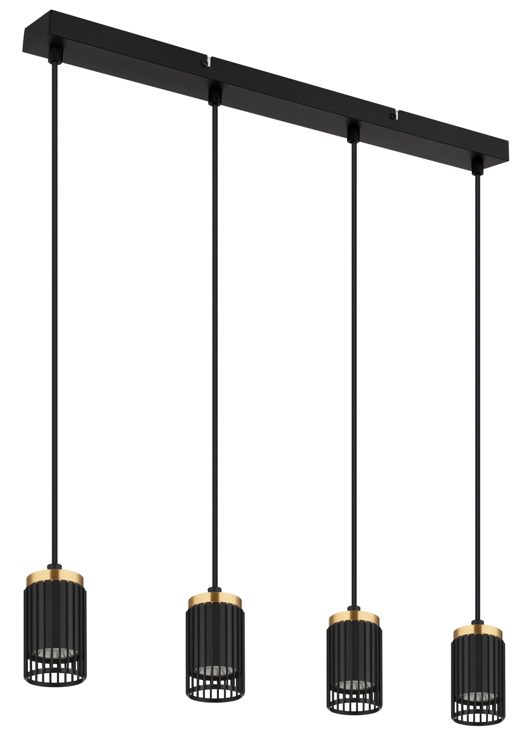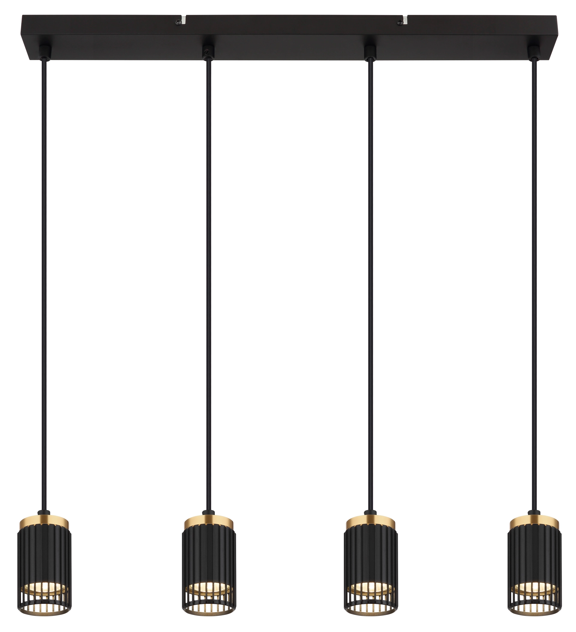 Viseća lampa KORBEN kombinuje moderan dizajn sa raznovrsnom funkcionalnošću i biće privlačna u svakoj prostoriji. Sa svojim izduženim, pravougaonim formatom i četiri cilindrična abažura otvorena na prednjoj strani, obezbeđuje ciljanu raspodelu svetlosti i stvara prijatnu atmosferu. Mat crno metalno kućište ističe elegantan izgled lampe, dok mat aluminijumski abažuri u crnoj i zlatnoj završnoj obradi nude stilski kontrast. Ova kombinacija daje visećoj lampi KORBEN savremeni karakter koji se harmonično uklapa u različite stilove opremanja. Upotreba GU10 sijalica omogućava fleksibilne opcije osvetljenja koje su idealne za trpezarije, kuhinje ili dnevne prostore. Bilo da je kao glavni izvor svetlosti iznad trpezarijskog stola ili kao dekorativni element u dnevnom boravku – viseća lampa KORBEN pruža stilski akcent i obogaćuje vaš dom svojom jedinstvenom elegancijom.