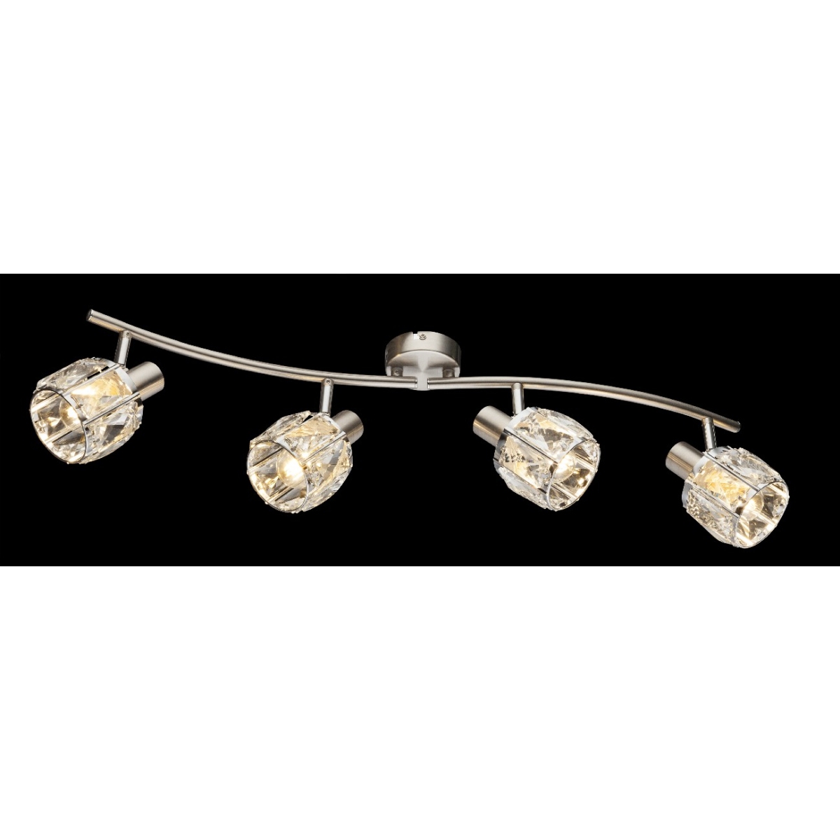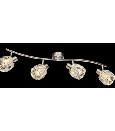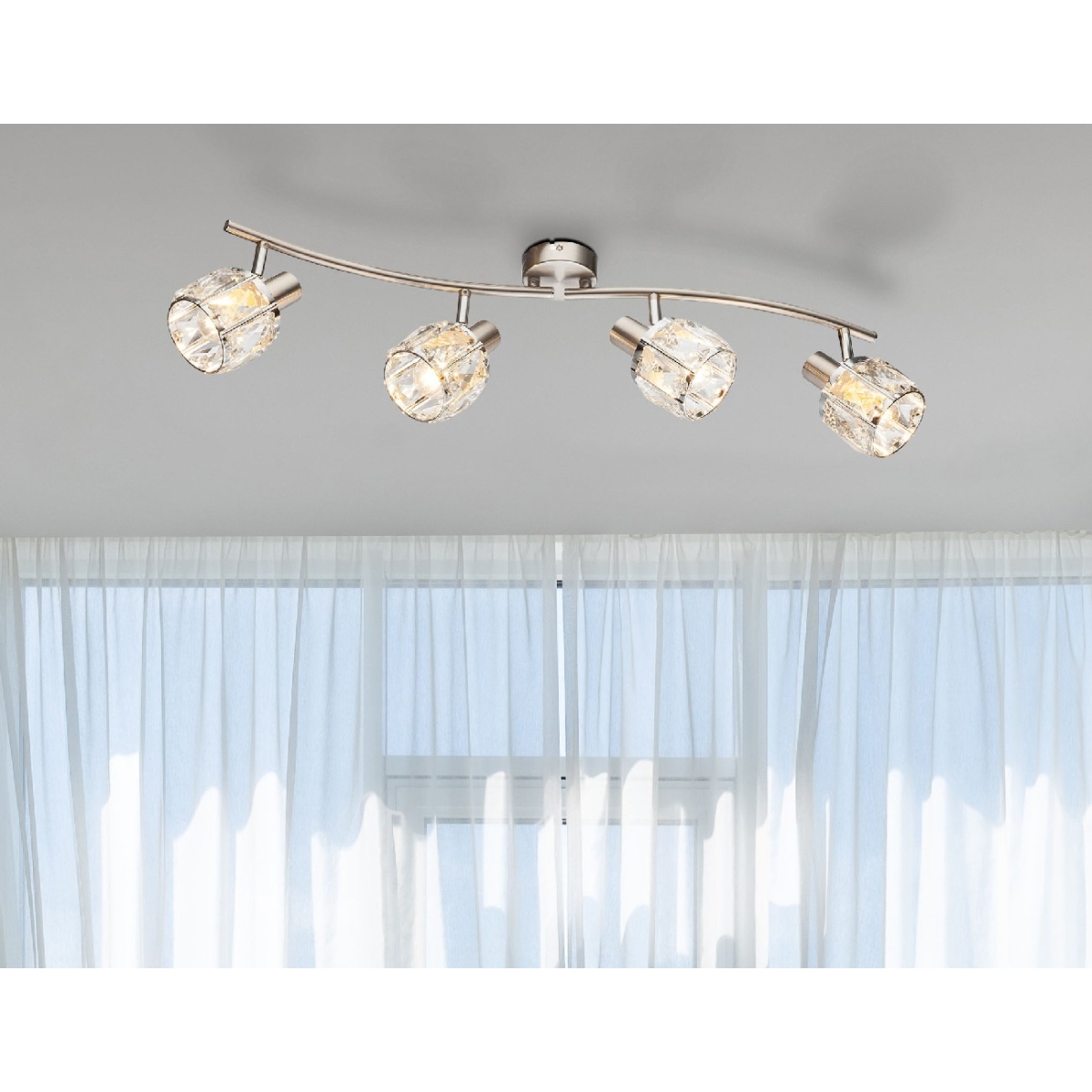 Ovaj reflektor na plafonu kombinuje materijal i dizajn. Četiri elegantna pokretna stakla napravljene od dragocenih staklenih kristala i uokvirena hromiranim metalom prikačene su na dve zakrivljene grane čvrsto montirane na nikl-mat plafonsku osnovu. Dostupna E14 grla vam omogućavaju da sami odredite osvetljenje i samim tim svetleći intenzitet i laganu boju (max.40W). Zbog uštede energije i trajnosti preporučujemo LED sijalice. Drugi modeli iz iste serije reflektora mogli bi da upotpune sliku u vašem prostoru.