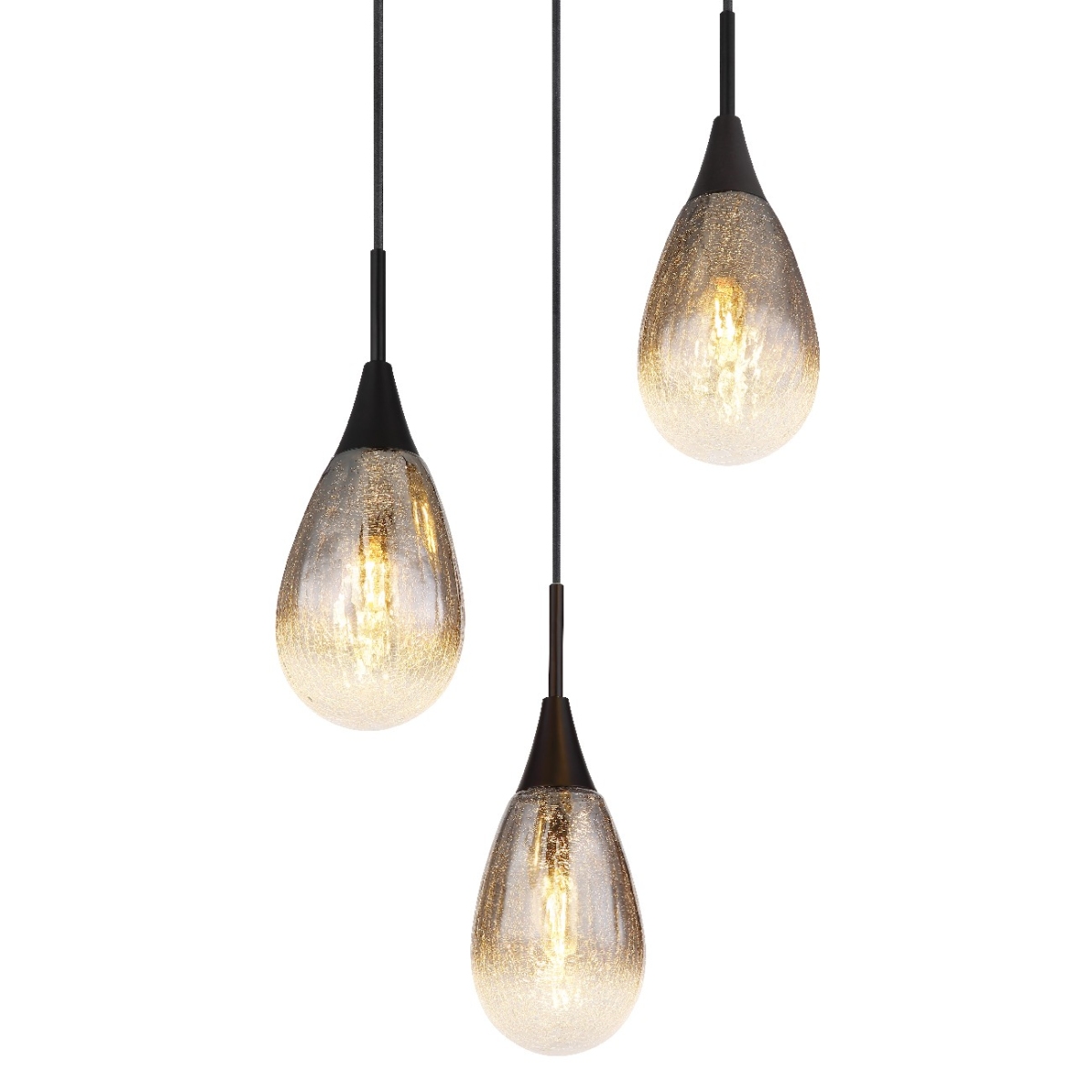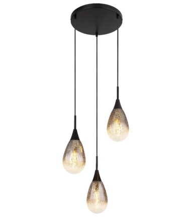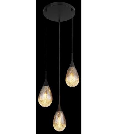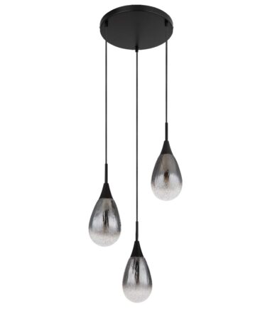 Ova prelepa visilica serije KRYS inspiriše sjajnim dizajnom. Od okruglog plafonskog nosača isturena su tri različita, do 1,2 m dugačka crna kabla do svake grla E14, koji su opremljeni oblikovanim staklenim abažurima u boji dima. E14 grla vam omogućavaju da sami odredite boju svetla i jačinu do maksimalnog izlaza od 9 vati. Zbog dugovečnosti i uštede energije preporučujemo LED sijalice.